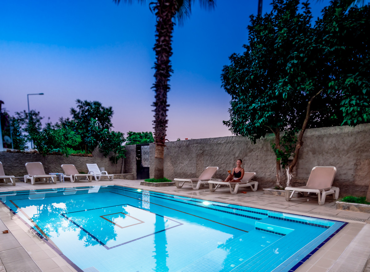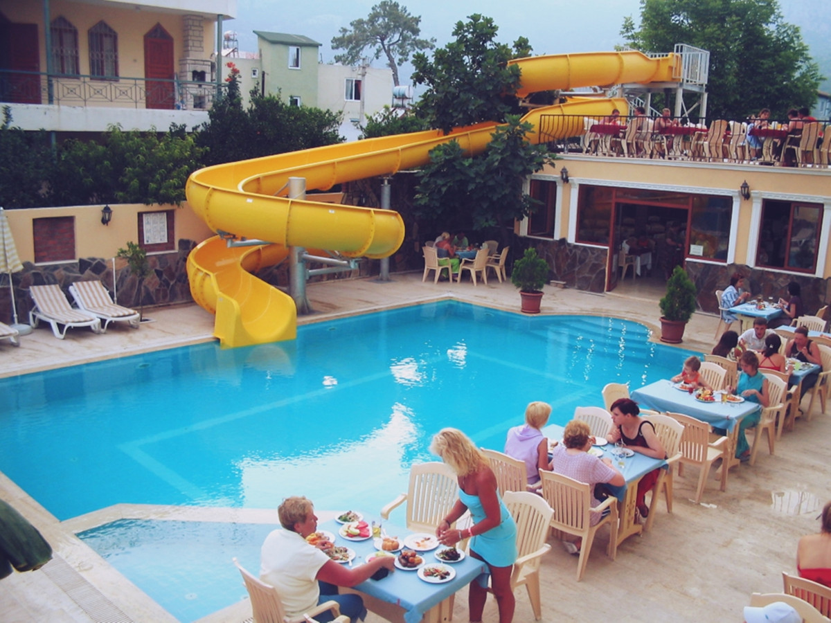 Были в отеле в июле 7 ночей с женой. Все обычно. Номер 212 с видом на бассейн, все работает: кондей, душ, унитаз, фен, телевизор 3 канала русских, холодильник. (Пытались впарить подключение за "бабки", подключил сам, нашел провод и сделал "жулика", мы же с России), зеркало, кровати, простыни белые, чистые. Экскурсии брали у Али, на выходе на дорогу Ататюрка справа. Дает бонусы и скидки. Советуем посетить Зеленый каньон, но при входе потребуют 2 доллара за ремонт таак сказать каньона, чтобы не сильно проваливался (12 стульев, провал) Питание: утром каша овсянка, яйца, мюсли, молоко, колбаса Турецкая 4 вида, сыр Турецки 3 вида, зелень, огурцы, помидоры, сладкие джемы 3 вида, кофе, чай, вода, сок юпи 2 вида. Обед: суп, картошка, тушеные овощи, курица или потроха куриные. Перчики острые! Остальное все тоже, что и утром. Ужин: оставшийся суп, куриные ноги, рис желтый, овощи печеные. Остальное тоже, что и в обед. Бар: утром сок юпи, вода, кофе, спрайт, кола, фанта, чай. Днем: вино красное и белое, и все, что утром. Вечером до 21:00 джин, водка и все, что было утром и днем. Напиться не получится, но посидеть у бассейна можно. Вечером после ужина танцы по желанию, неплохая аппаратура, свет и звук. Есть микшер и микрофоны, можно "повыть про "Рюмку водки на столе", если кто умеет). Так что развлечения, т.е. "Половецкие пляски", зависят от желания и возможности туристов. Море отличное, вода в июле 28-30 градусов! Чистое, но вход - камни (коралки обязательно берите). Есть входы, где камни убрали. Рядом, если идти по пляжу 800 метров, есть дикий пляж, вход замечательный! Там есть небольшие пещеры капитана Джека воробья. Развлечения: с 23:00 дискотека Флай, не хуже, чем в Ауре и рядом. Детей не брать! Легкий стриптиз. Вход бесплатный, бар платно, дорого. Рядом Кемер 4 лиры, Анталья 8 лир. Гейнюк 2 лиры на автобусе. Не требуйте от хозяина отеля и персонала много. И у вас будет счастье. Стоимость нашего тура из Нижнего Новгорода 33 400 рублей на 7 ночей! Это сейчас просто даром. Кстати, я обладатель электросамоката CACTUS CS-ESCOOTER-S2, 4400mAh, черный - ЭТО ЕДИНСТВЕННАЯ МОДЕЛЬ, КОТОРУЮ ПРОПУСКАЮТ В САМОЛЕТ. Аккумулятор съемный и мощность его 158 ватт/ч. Купите и подарите радость себе и детям. Так еще об отеле, иногда выключают свет. Запаситесь налобным фонариком, чтобы не пить алкоголь в темноте. Алкоголь привозил с собой 3 литра, что не выпил - раздал Туркам. Самогон свой, даром калькулятивная себестоимость 40 рублей литр. (Почему Турки не гонят, непонятно). У номеров есть балконы, веревку для сушки белья захватите и прищепки. Ветер с моря дул.... Проводите время на экскурсиях, яхта Моби-Дик вас удивит. Экскурсию по Антальи на Дюден. Хамам в отеле довольно сносный, пользуйтесь. Поселок Бельдиби - это рай для прогулок и радость для глаза, частные дома изобилуют добрыми людьми. И еще в баре часто не хватает стаканов и бокалов, ну подождите пару минут и все принесут. Не раздражайтесь по пустякам. Туалетной бумаги дают вволю. Мыло тоже. Желаем приятного отдыха!