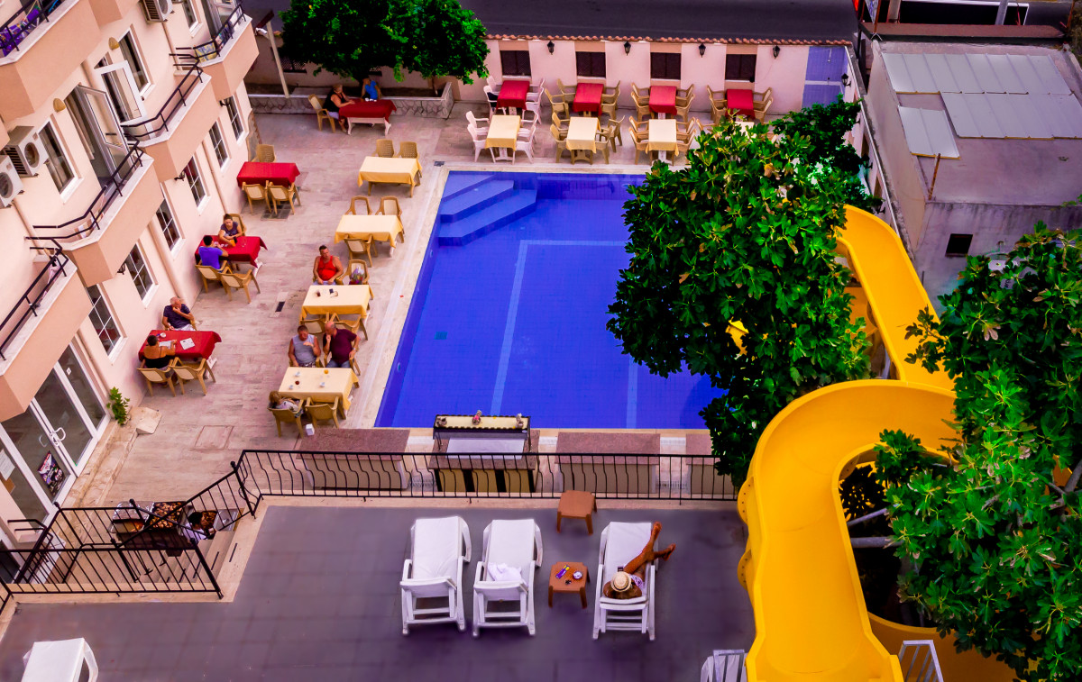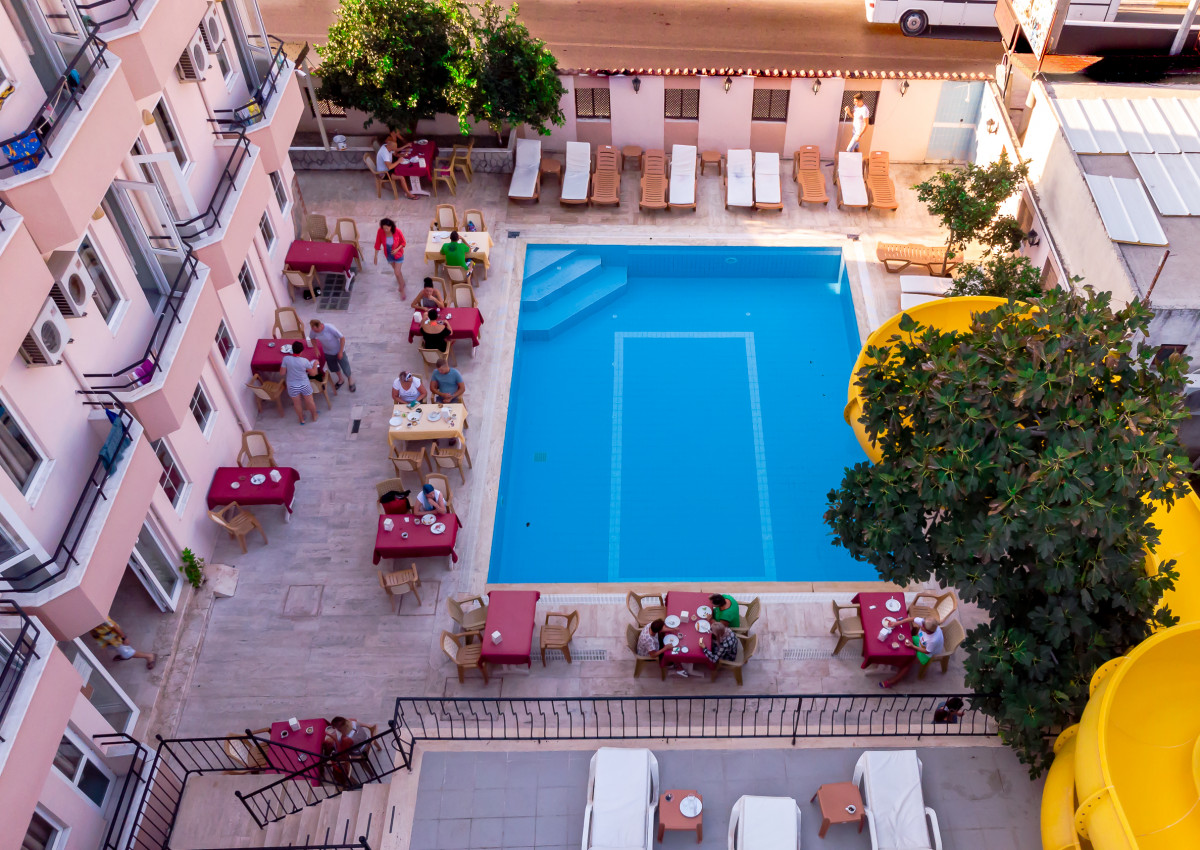 Отель для экономичного отдыха, представляет собой одно пятиэтажное здание и небольшую территорию. Расположен в поселке Бельдиби, в 35 км от аэропорта г. Анталья. Внимание! Курение запрещено во всех номерах.