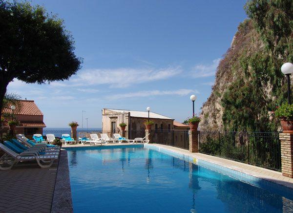 На курорте Таормина-Маре на возвышенности, в 100 метрах от пляжа через подземный переход, между пляжем и отелем проходит железная дорога.