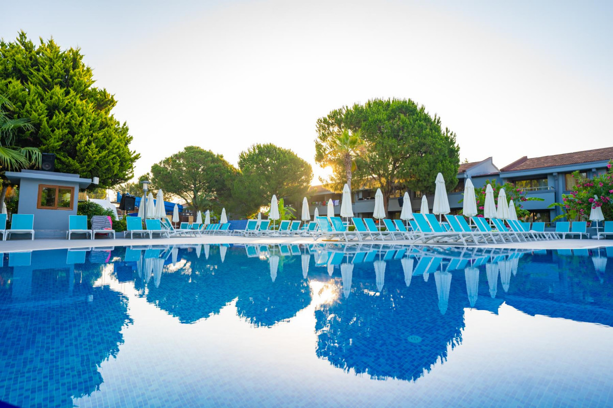 Отдыхали в сентябре 2025 года. В целом,отель неплохой,с хорошей территорией зеленой,удобно ходить до моря,3 бассейна. Еда обычная,без изысков и разнообразия,но все съедобно. Лежаков хватало вполне. Море чистейшее,заход-мелкая Галька. Номера тоже обычные,не стоит ожидать евро ремонт,но вони не было и живностей тоже. В каждом номере есть холодильник, кондиционер,телевизор. Убирались нормально,у нас ничего не украли,Как писали в отзывах,девочки уборщицы очень приветливые всегда были. Убирались каждый день и без чаевых. Из минусов: горки уже под уставшие,плохо едут. Алкогольные напитки такие химозные,что пить было вообще не вкусно. Да и соки с автоматов были порошковые,отвратительные. Но самое главное,это непродуманная система ALL: завтрак заканчивался в 10:00 и до 12:00 в отеле негде было что-то перекусить,потому что снек-бар открывался только в 12:00. Поэтому если ты проспал,то жди 12:00. Но с 12:00 начинался обед и поэтому смысл есть эту фри,пиццу и невкусные гамбургеры с котлетой и сои,если можно уже пойти покушать нормально? В итоге с 12:00-14:00 был обед,а снек-бар работал до 16:00. Как итог, в период с 16:00 до 19:00(до ужина) в отеле не было еды,нечего было перекусить. После ужина так же все убиралось и дальше все,до утра голодный ходи если что. Был ночной суп,ради интереса сходили посмотреть: там действительно суп из чечевицы,острый до ужаса. Анимация в отеле никакая. То ли к сентябрю уже устали,то ли просто ребята вообще не старались. Вечером в амфитеатре были небольшие шоу,иногда было интересно,иногда нет. В целом,для спокойного семейного отдыха пойдет,но если едешь молодежью,то это точно не этот отель. Все же накрученные 5 звезд у отеля,максимум 4ка