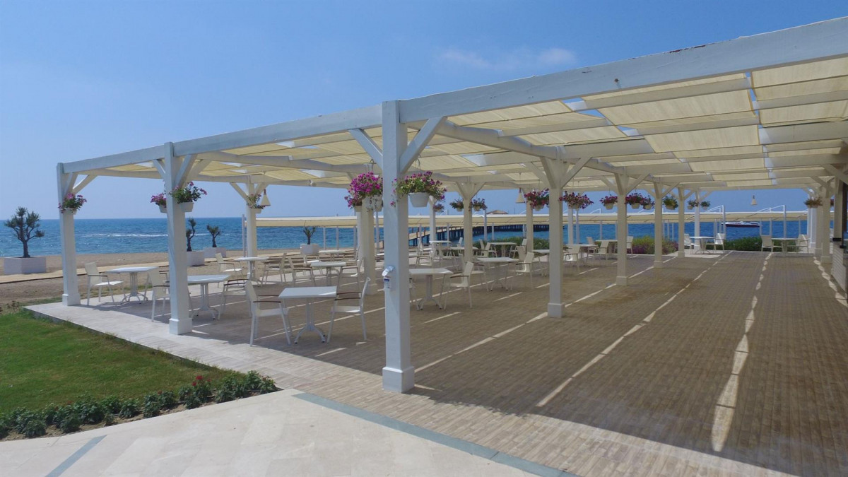 Были в этом отеле в 20-х числах мая, анимации дневной практически нет, да и вечерняя так себе, скучно будет с детьми. Много раз была в пятизвездочных отелях Турции, но такого низкого уровня в еде вижу первый раз, рыба только скумбрия жаренная и то не всегда, гриля практически нет вообще, одни тушеные овощи и мясо. Дорадо и Сибаса не будет точно. На завтрак много видов булочек и яйцо, никаких блинчиков, пончиков нет, иногда были панкейки, однообразные пирожные, только разных цветов, арбузы вкусные, дыни нет. Утром был свежевыжатый сок, чай и кофе, как и везде. Спокойный отель с небольшой территорией, заход в море с камнями, больно заходить в море, возле моря снек-бар по меню, конечно к русским подходят в последнюю очередь, приходилось напоминать о своем заказе, мороженое в открытом доступе и возле пляжа и возле ресторана, полотенца нужно брать на -1 этаже в SPA, не очень удобно было. Делали смузи детям, но не из фруктов, а из сиропов химических, не вкусно. Бассейн не подогревается, утром холодный, к 12 дня теплее становится. Горки за отелям, вообще не удобно, приходилось с детьми туда ходить несколько раз, и детская анимация тоже за пределами отеля, поэтому это не отель с детьми, отель для немцев и спокойствия. Этот отель никому не посоветую и туда не хочется возвращаться, повелась на хорошие отзывы об отеле, о чем очень пожалела. Это не 5, а 4-, а по еде вообще 3!!!!