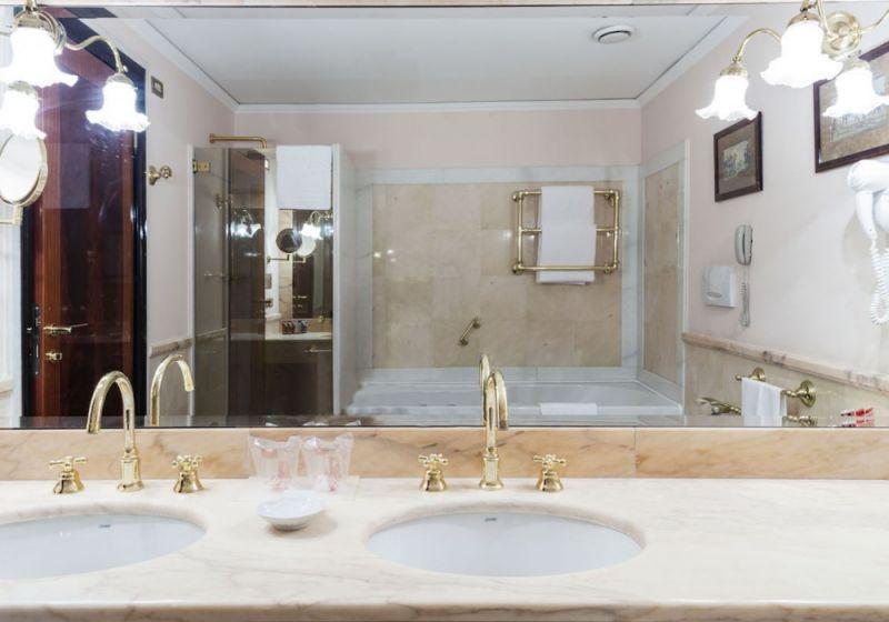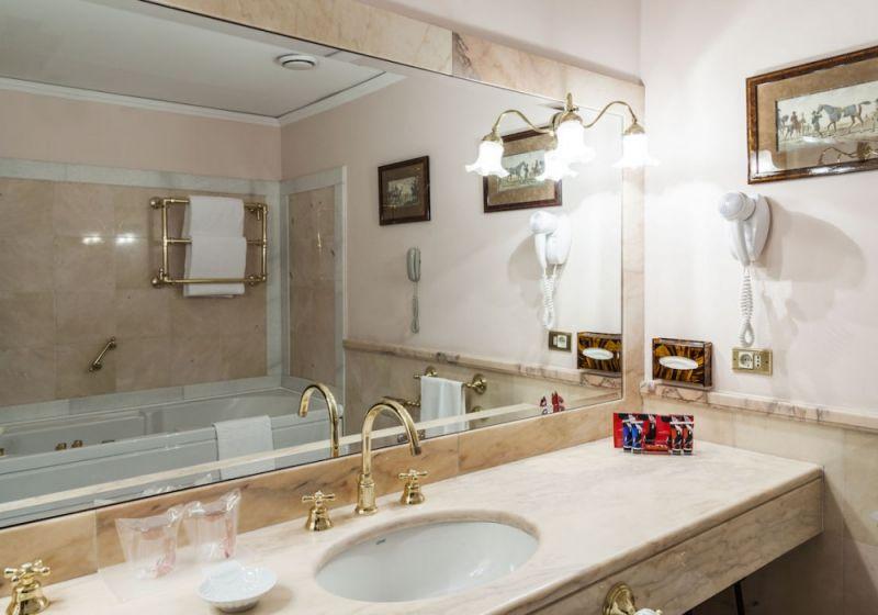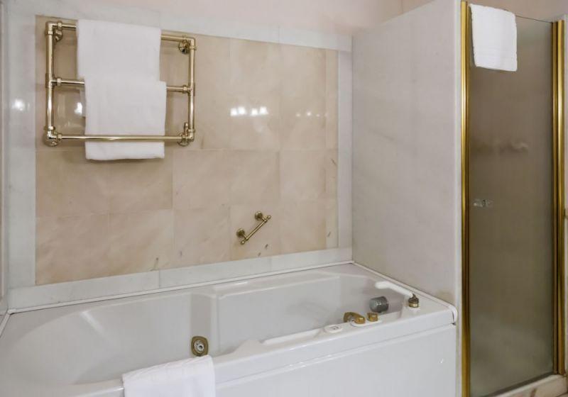 Junior Suite (оборудованные Queen Sized (200 см), 26-дюймовый светодиодный телевизор с каналами Sky, большой гардероб с зеркалом с прессом для брюк, пуф, чайник и кофеварка, бесплатный мини-бар; зона отдыха с диваном и удобными креслами, оборудованная 37-дюймовым телевизором со светодиодной подсветкой с каналами Sky, видеомагнитофоном и системой Hi-Fi; розовые португальские мраморные ванные комнаты оснащены джакузи и душевой кабиной с плоской душевой кабиной, двойными раковинами, весами, широким ассортиментом туалетных принадлежностей /ампулы с энергетической минеральной солью и ароматизированные свечки/, тапочками)