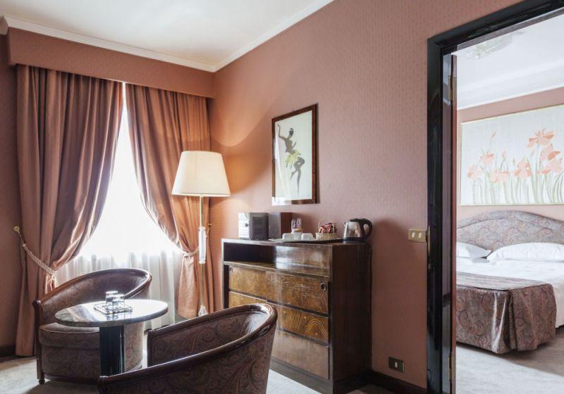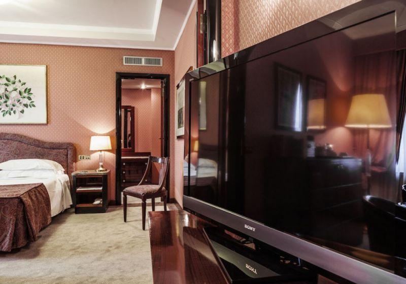 MilADIes (кровати (120 см) или Queen Sized, 26-дюймовый светодиодный телевизор со спутниковыми каналами, чайник и кофеварка, зона отдыха с удобным креслом, бесплатный мини-бар, приветственные фрукты, бесплатное обслуживание в номерах, удобная регистрация отъезда в 14:00, парковку в гараже 15,00 €, подарок для женщин (журнал Vanity Fair); ванные комнаты оборудованы ванной или душем, туалетными принадлежностями и тапочками, зеркалом для бритья и макияжа, ночник)