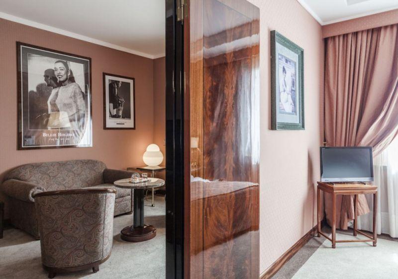 Jazz Junior Suite (оборудованы Queen Sized (200 см), 26-дюймовый светодиодный телевизор со спутниковыми каналами, гардероб с прессом для брюк, чайник и кофеварка, бесплатный мини-бар; гостиная с диваном и удобными креслами, оборудованная 37-дюймовым светодиодным телевизором со спутниковыми каналами, видеомагнитофон и Hi-Fi система; розовые португальские мраморные ванные комнаты оснащены джакузи и душевой кабиной с плоской душевой кабиной, двойными раковинами, весами, широким ассортиментом туалетных принадлежностей и тапочками; подарочный комплект: компакт-диск и джазовая книга)