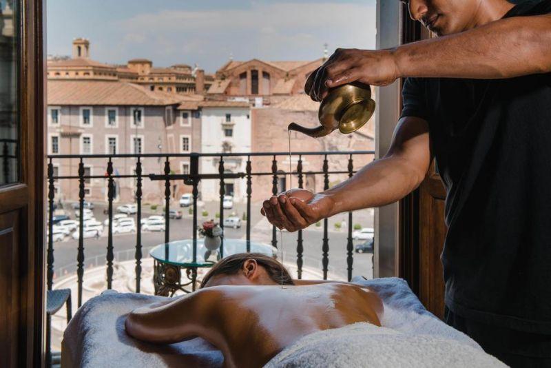 От красоты и изысканности этого фешенебельного отеля в самом центре Рима буквально захватывает дух. Внутреннее убранство интерьеров выполнено в элегантном неоклассическом стиле: хрустальные люстры, мягкий золотистый свет, изящная мебель, зеркала в золоченых рамах, свежие цветы, спокойная музыка где-то на заднем плане. И конечно, сервис на самом высоком уровне – профессиональный персонал отеля безупречно учтив и предупредителен в своем стремлении удовлетворить любые нужды клиентов.