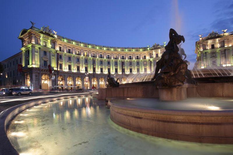 На площади Республики, рядом с прекрасным фонтаном Наяд, древними руинами Диоклетиановых терм и базиликой Санта-Мария-дельи-Анджели расположился величественный дворец XIX века с фасадом из белого мрамора — Boscolo Exedra, роскошный пятизвездочный отель, способный удовлетворить запросы самого утонченного ценителя. Здесь часто останавливаются всемирно известные киноактёры, модельеры и музыканты.