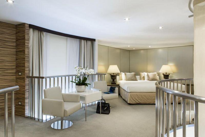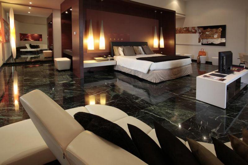 В комфортабельных номерах Boscolo Hotel Exedra утонченная классика соединяется с современными тенденциями. Три этажа правого крыла здания заняты тремя номерами категории Suite, оформленными каждый в своем неповторимом индивидуальном стиле. Эти номера состоят из гостиной, столовой, рабочей зоны, спальни и ванной комнаты, украшенной мозаикой, с гидромассажной ванной, мини-SPA и турецкой баней. Комнаты отделаны дорогими материалами, а зональное освещение подчеркивает красоту каждой части интерьера.