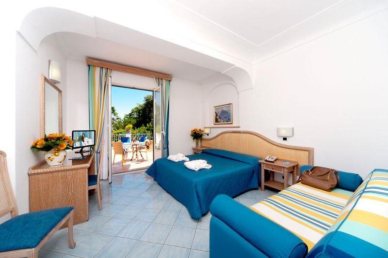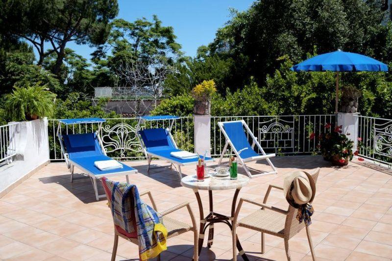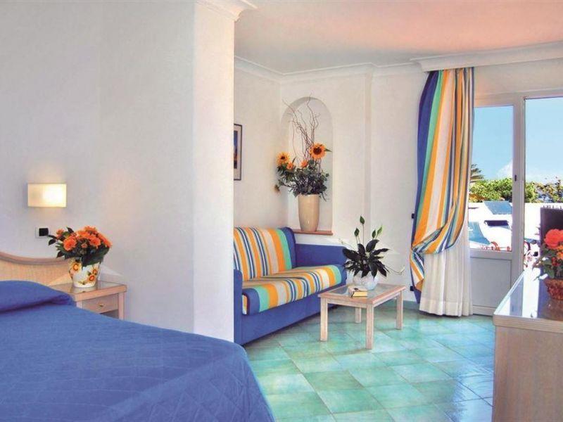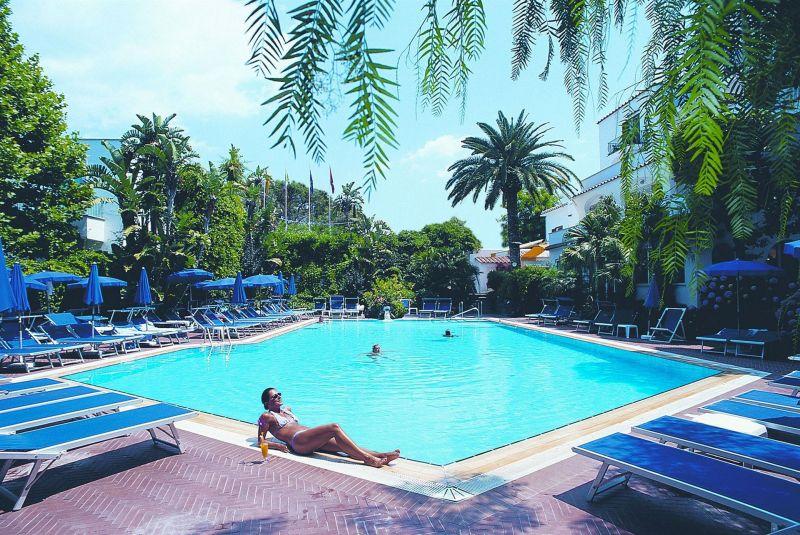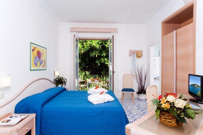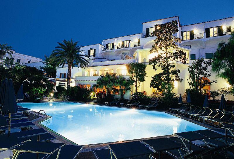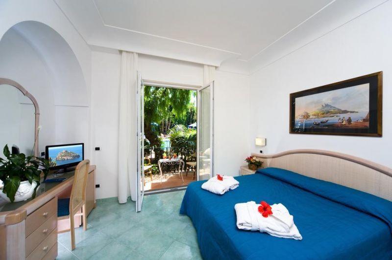 На острове Искья, в 49 км от аэропорта Неаполя (17 км до порта Неаполя + 32 км на пароме от Неаполя до острова Искья), в 400 от порта г. Искья-Порто, на центральном променаде Искья-Порто, в 150 м от моря.