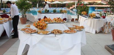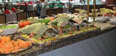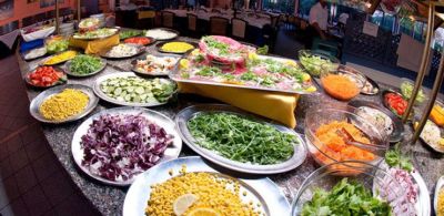 Ужин - "шведский стол" с разнообразными творениями и кулинарными изысками
