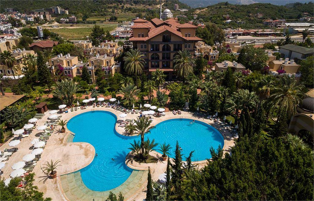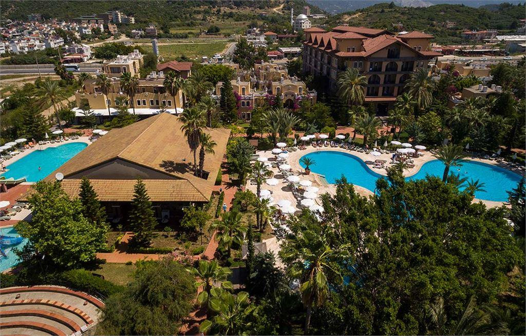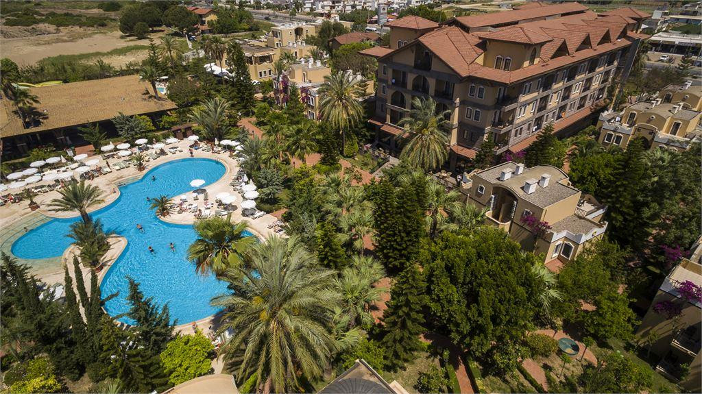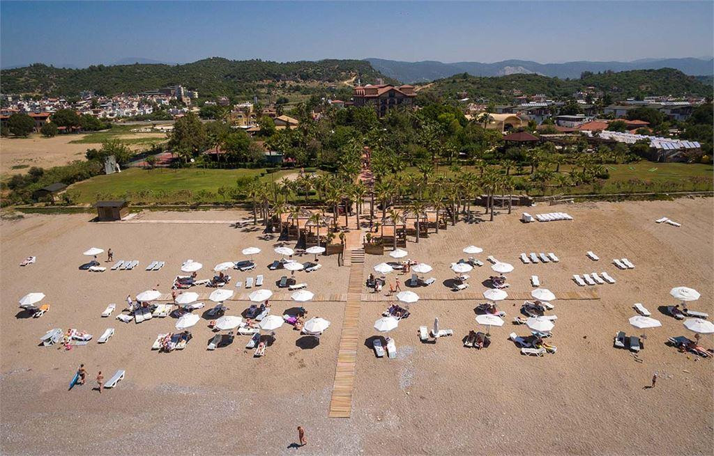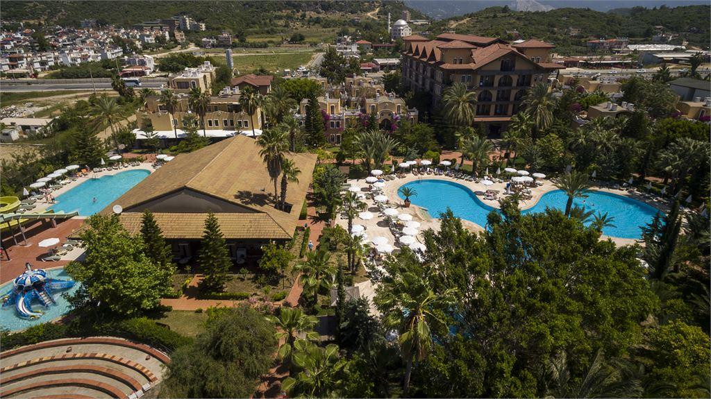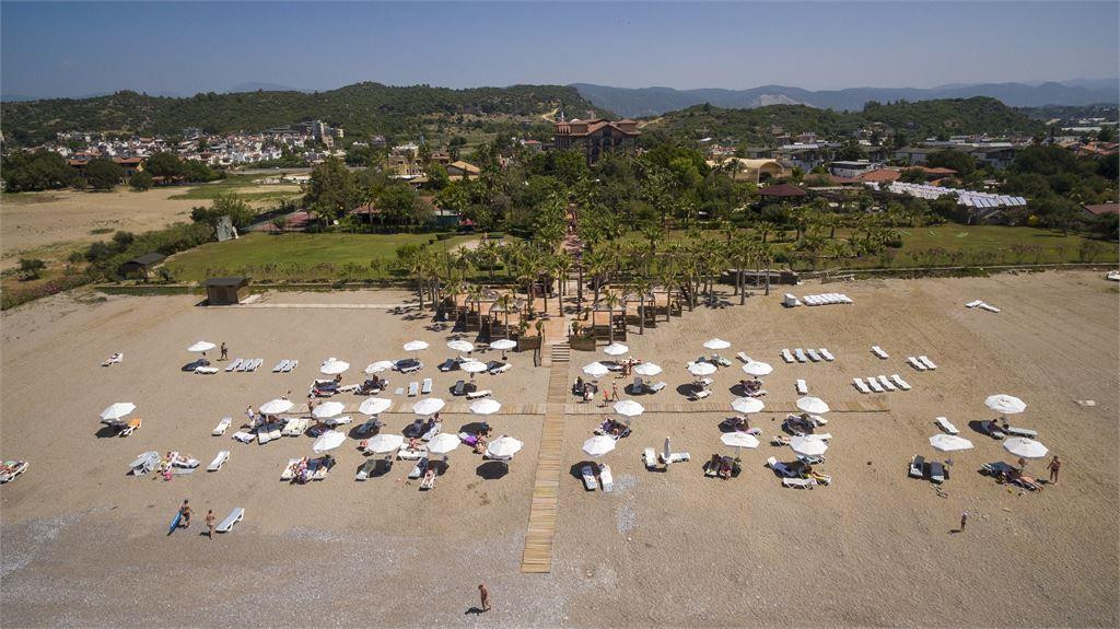 В 88 км от аэропорта г. Анталья, в 15 км от г. Манавгат, в 10 км от г. Сиде, в поселке Кызылот, на берегу моря.