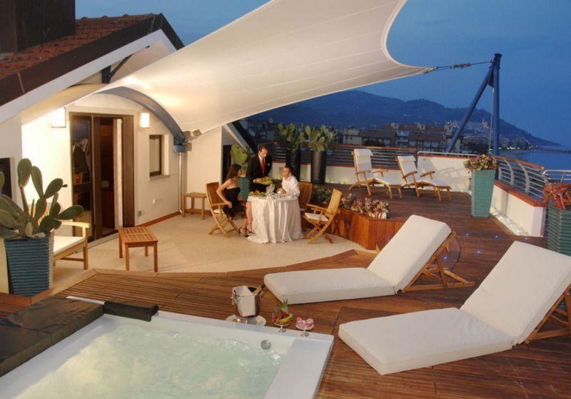 Suite 501 (престижный номер подходит не только для отдыха, но и для работы; терраса 80 кв.м, джакузи Teuco модель Seaside, цифровая музыкальная система Sonos; спальня, гостиная)
