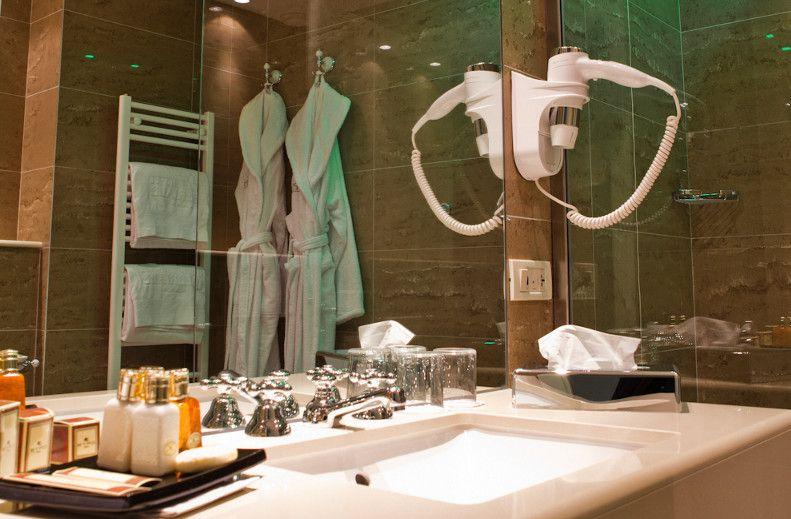 Отель построен в стиле позднего арт-нуво, окна его номеров выходят на озеро или окружающий отель сад.
