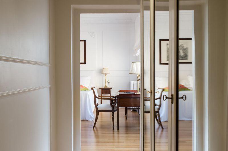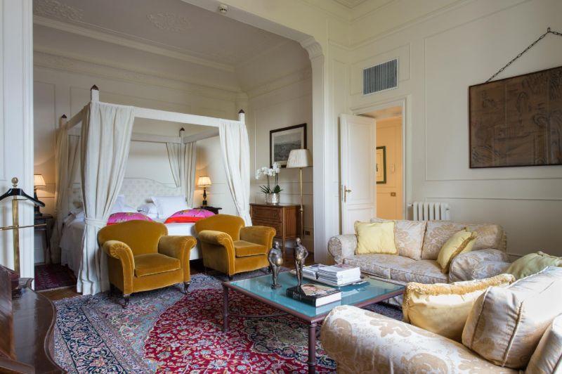 Отель был построен в середине XVII столетия . Вначале в здании проживала знатная итальянская семья из Пьемонта. Затем, в 1860 году, оно было переоснащено под роскошный отель. Благодаря своему положению в центре Рима отель сразу же начал пользоваться огромным успехом. Именитыми гостями отеля были Уинстон Черчилль, Шарль де Голль, Версаче и Джордж Клуни.