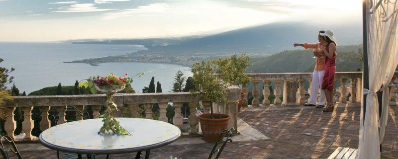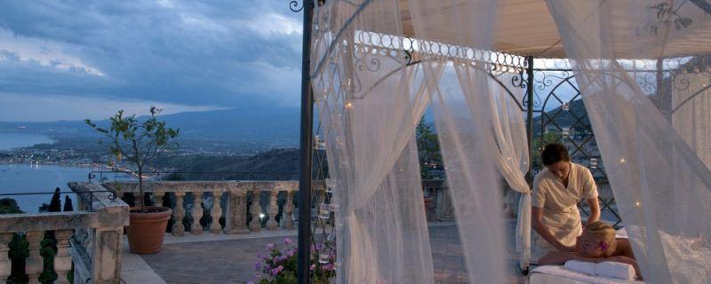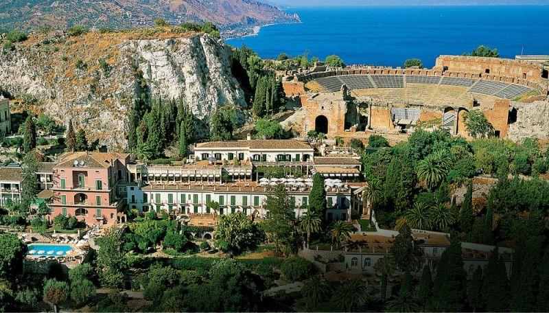 Старинное здание отеля окружено большим парком. Это был самый первый отель, построеный в старом городе Таормина - прямо напротив древнегреческого театра. Шопинг зона Corso Umberto находится всего в 200 метрах от отеля. Станция канатной дороги между Таормина и Таормина Маре (Mazzaro)- 400 м от отеля. Пляж в партнерском отеле Sant Andrea Hotel в Taormina Mare находятся в 3 км от отеля, куда организуется регулярный трансфер в течение дня (бесплатно).