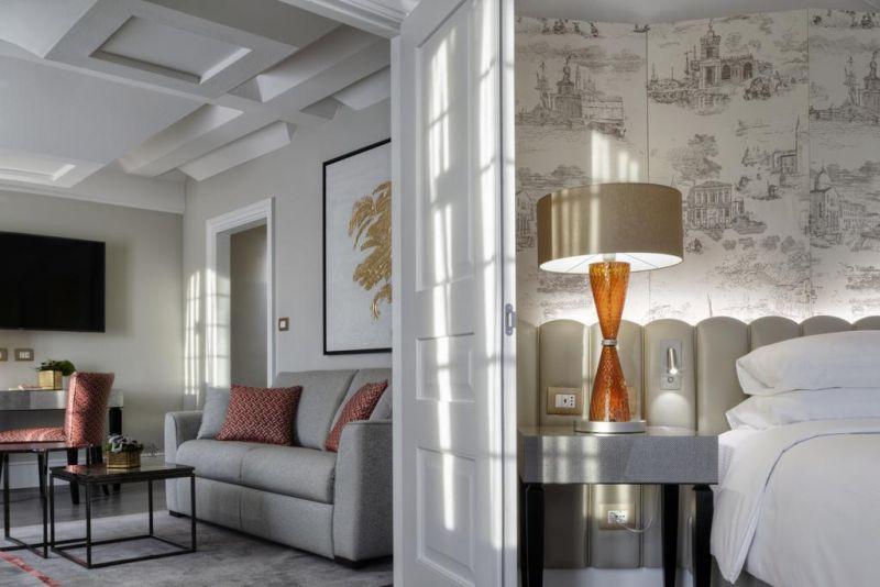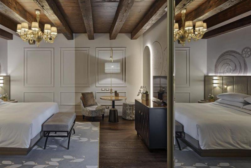 Отель расположен на острове Джудекка, в южной части Венеции. Каждые 15 мин от отеля ходит бесплатный катер до главной площади Венеции – Сан-Марко. Номера нетипичны для Венеции: просторные, с высокими потолками и большими окнами, что обусловлено архитектурой здания, которое было построено в XIX в. под мукомольный завод. Высокий уровень сервиса – гарантия качества всемирно известной гостиничной цепочки Hilton.