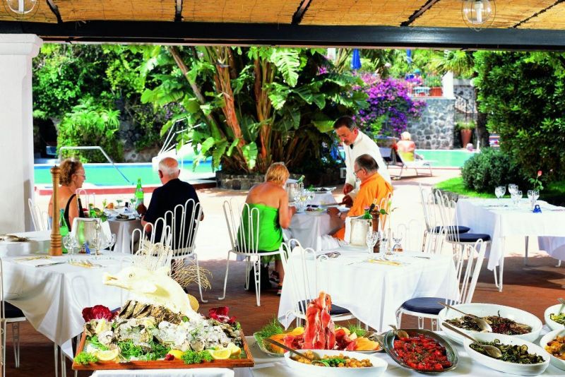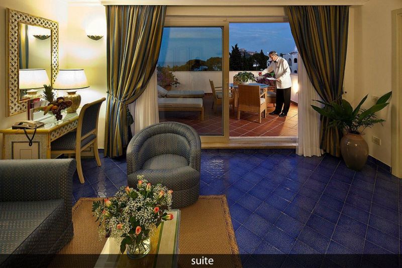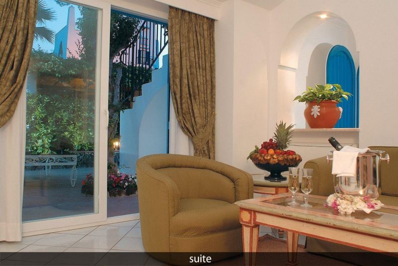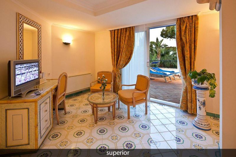 Окруженный вековыми соснами, роскошный 5-ти звездочный отель Grand Hotel Il Moresco расположился в самой эксклюзивной части острова, откуда открывается бесподобный вид на Неаполитанский залив. Это настоящий оазис в райском уголке: окруженный стеной из вулканической лавы, отель имеет просторные холлы, патио, цветущие сады и бассейны с термальной водой – ценнейшим природным ресурсом острова Искьи.
