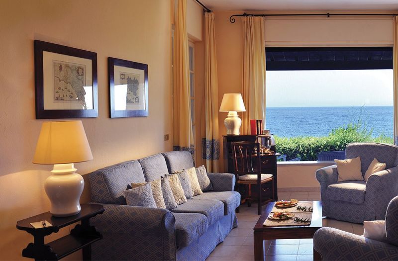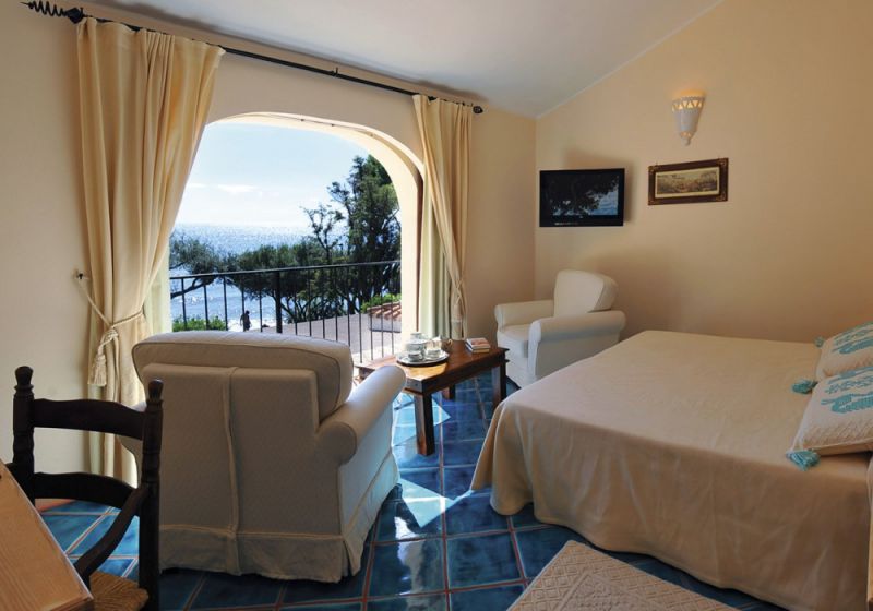 PRESTIGE SEA VIEW: (Новые номера с видом на море с двумя односпальными кроватями или одной двуспальной кроватью и балконом. Номера элегантно оформлены в традиционном стиле Сардинии. Расположены на 1-м этаже, есть ванна или душ с гидромассажем. Размещение макс. 2 чел.)