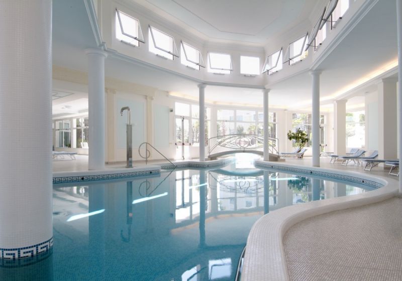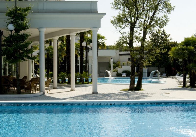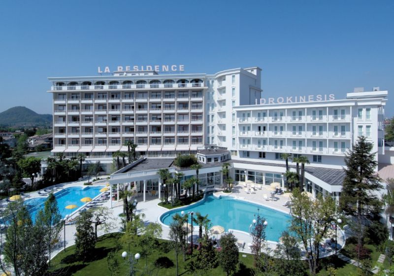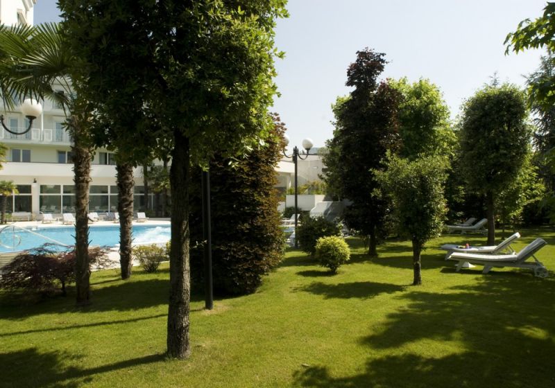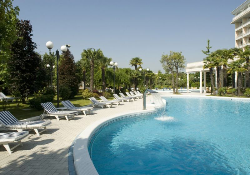 Deluxe (Общая площадь номера 30 м кв. Номера категории Deluxe расположены на верхних этажах в центральном крыле отеля с видом на Эуганские Холмы и имеют следующую планировку: - маленький вход и отдельная зона гардеробной - просторная комната-спальня, на полу ковровое покрытие (TV со спутниковым телевидением, мини бар, столик и кресла, телефон, платяной шкаф с сейфом) - ванная комната с ванной, туалетом, биде, умывальником с большим зеркалом. Окна ванной выходят на Эуганские Холмы - просторный балкон, окна которого выходят на парк с бассейнами и Эуганские Холмы Цветовая гамма: светло-зеленый цвет. )