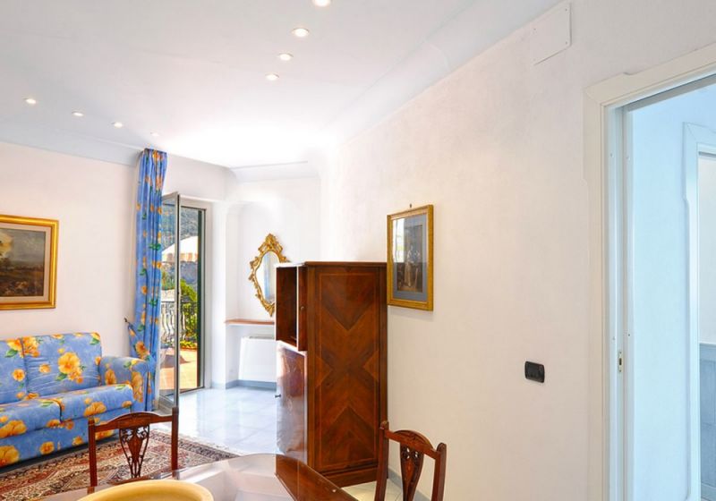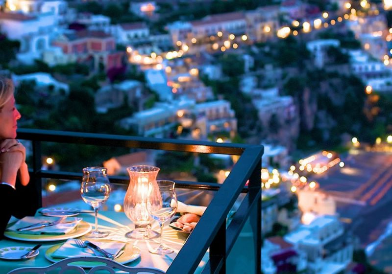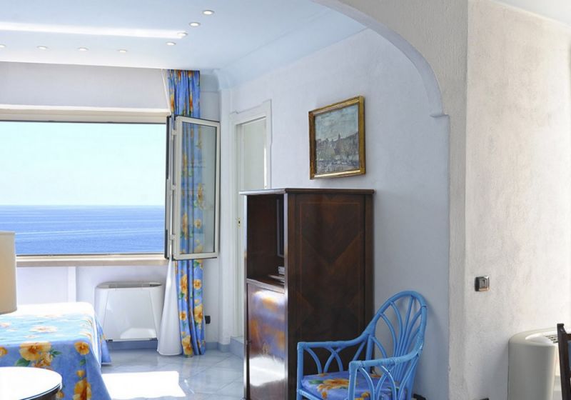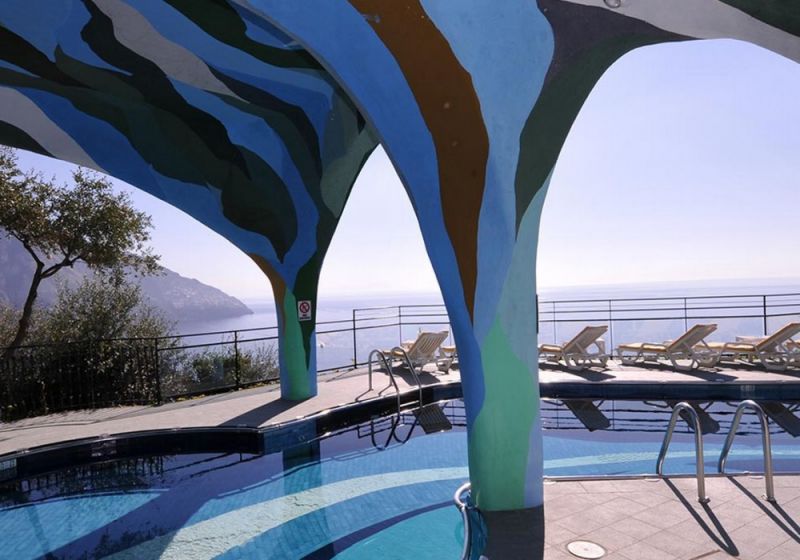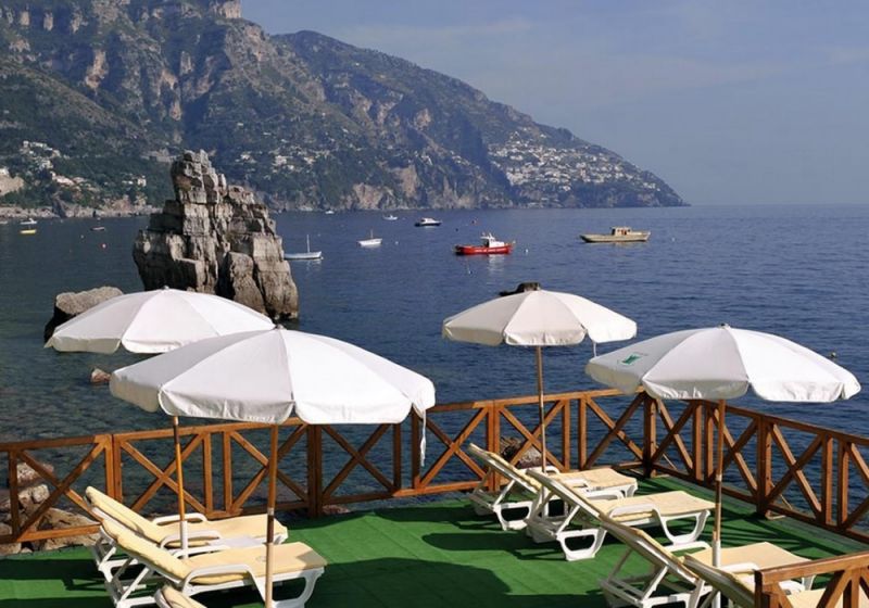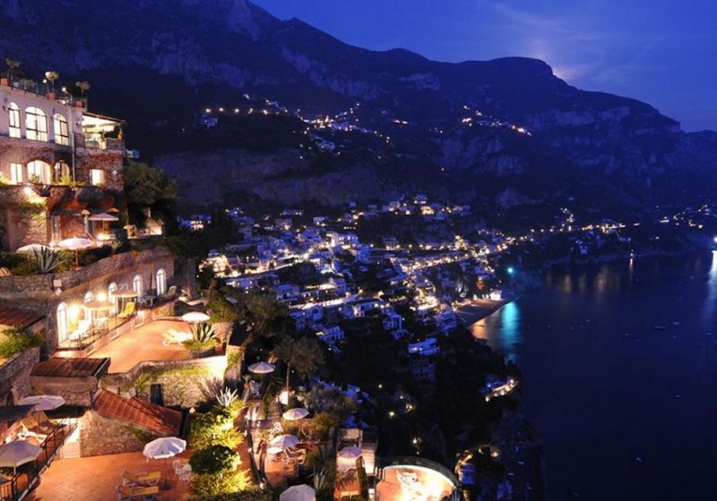 В 60 км от аэропорта Неаполя, в 700 м от центра курорта Позитано, в панорамном месте, на скале у моря.