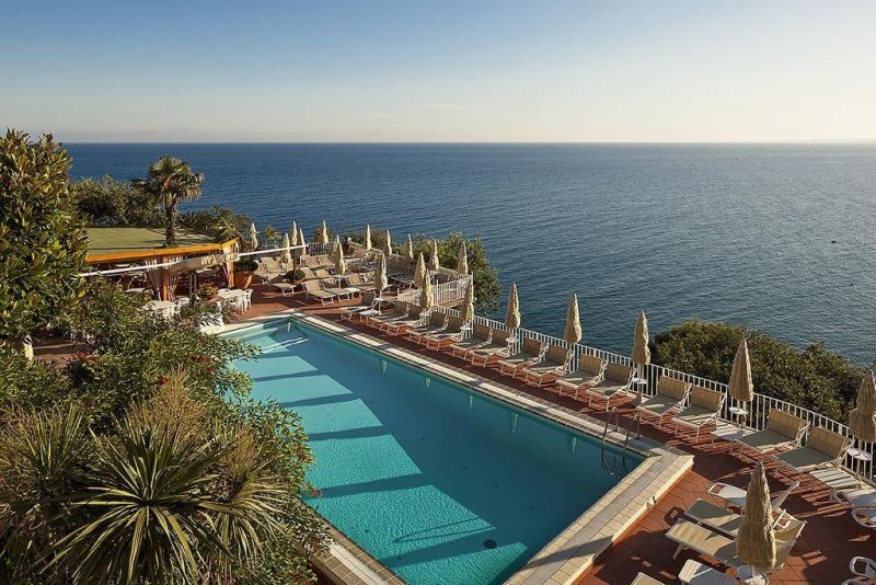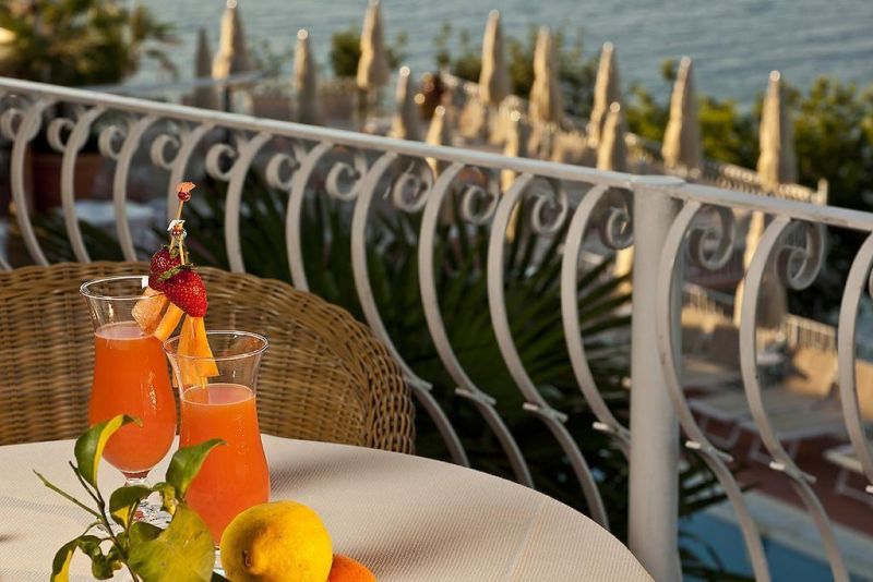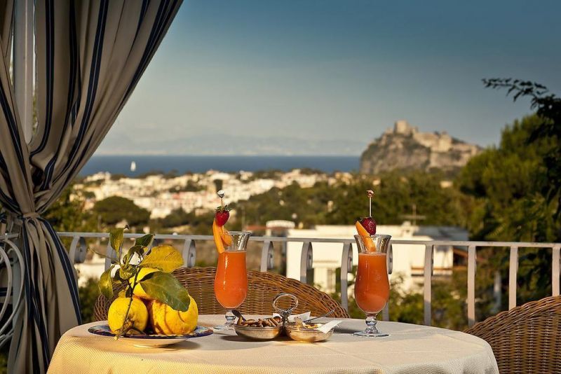 в 1 км от центра городка Искья-Порто, спуск к морю по ступенькам. Расстояние от аэропорта Неаполя - 40 км, от морского порта - 1 км. Расстояние до ближайших терм «Кастильоне»- 1 км. Автобусная остановка - 10 м от отеля.
