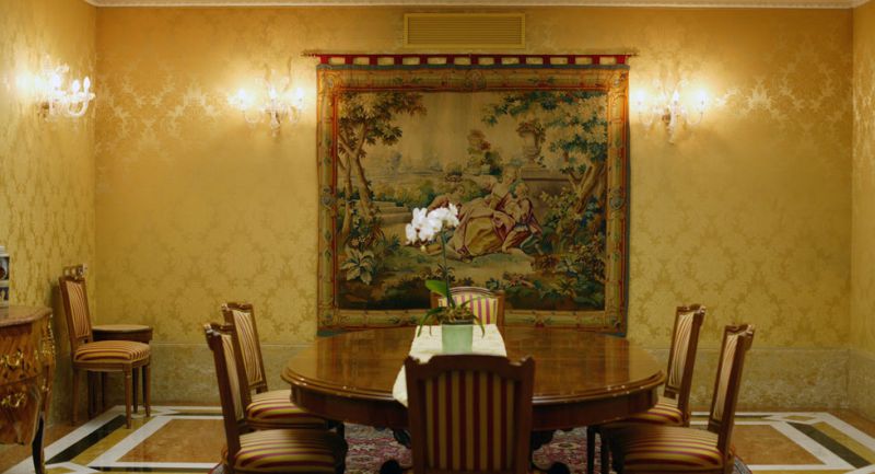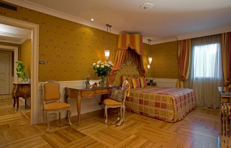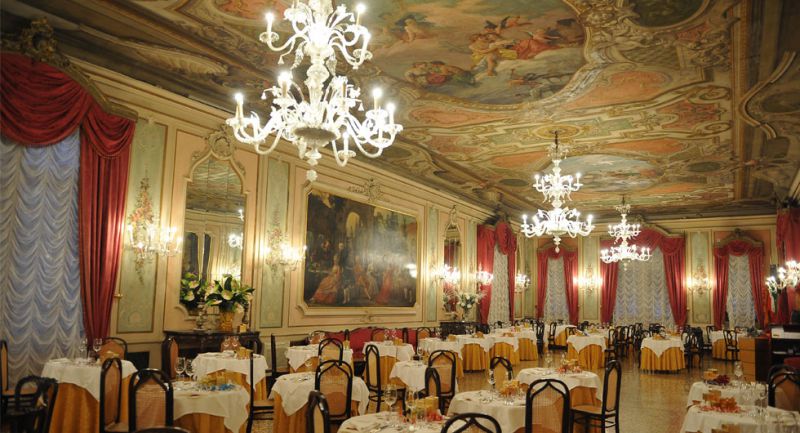 Здание отеля, известное с XVI в. как резиденция рыцарского ордена Тамплиеров, в XVIII в. было украшено фресками художников знаменитой школы Жана Батиста Тьеполо. В 1992 г. в результате реставрации отеля были восстановлены как первоначальный вид здания, так и интерьеры со старинной мебелью, муранским стеклом и дорогими тканями.
