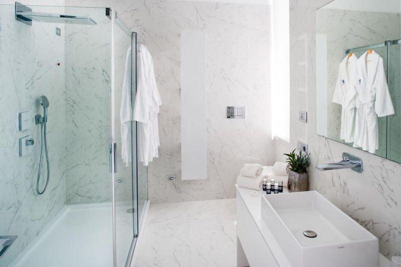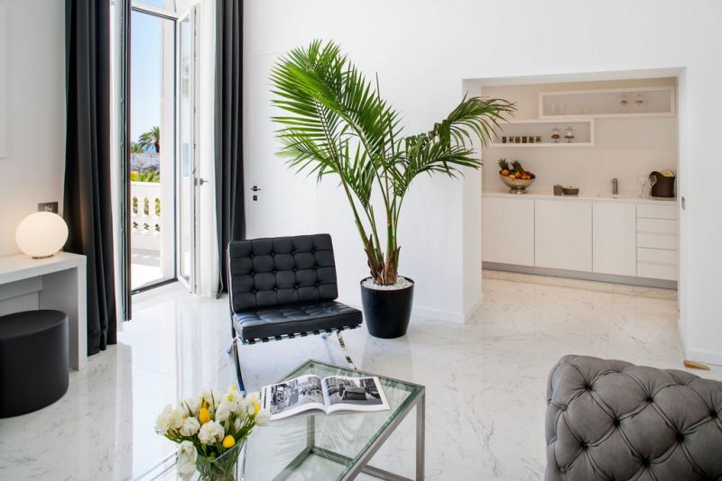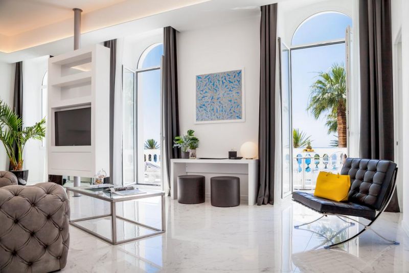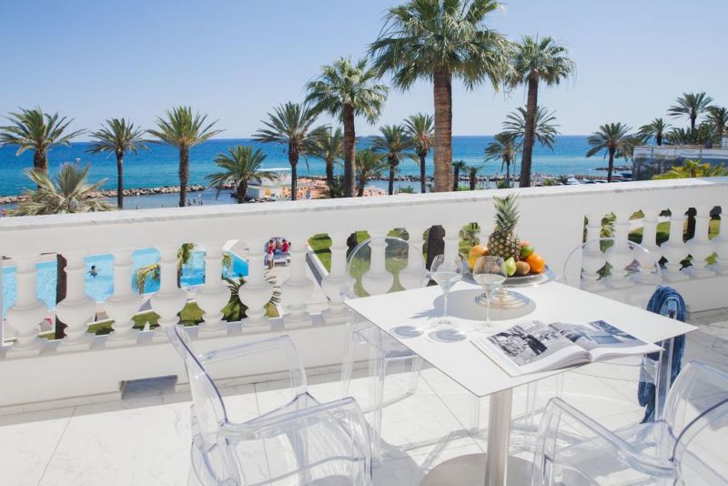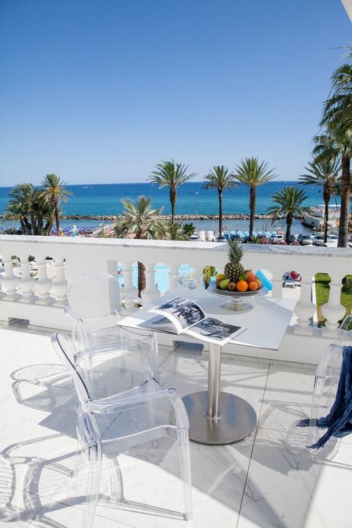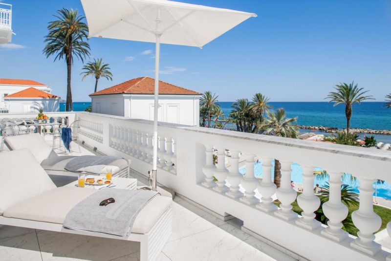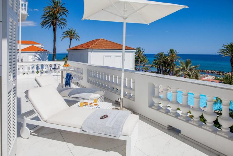 На территории собственного парка (10 000 м2), через дорогу от моря, в 500 м от центра курорта Сан-Ремо, рядом со знаменитой набережной Императрицы. Перед отелем проходит велосипедная дорожка вдоль моря длиною 25 км.