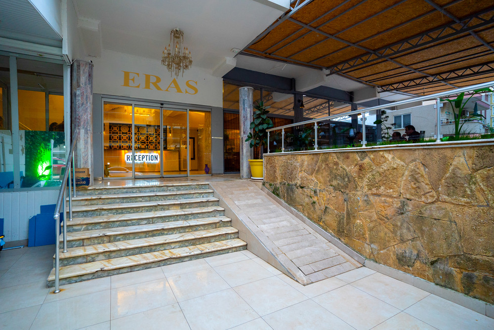 В 120 км от аэропорта г. Анталья, в 5 км от центра г. Аланья, в 100 м через дорогу от пляжа.