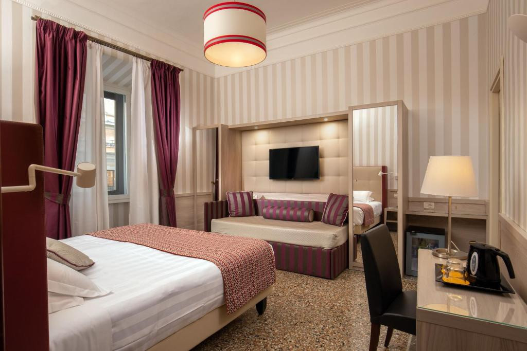 Городской отель оформлен в классическом стиле 1930-х годов. До железнодорожного вокзала Термини 5 минут ходьбы. С террасы отеля открывается отличный вид на Рим. Завтрак подают в обеденном зале, гости также могут заказать завтрак в номер. Номера отражают элегантную и гостеприимную атмосферу салонов, в которых мебель в старинном стиле сочетается с современным декором. На территории есть фитнес-центр.
