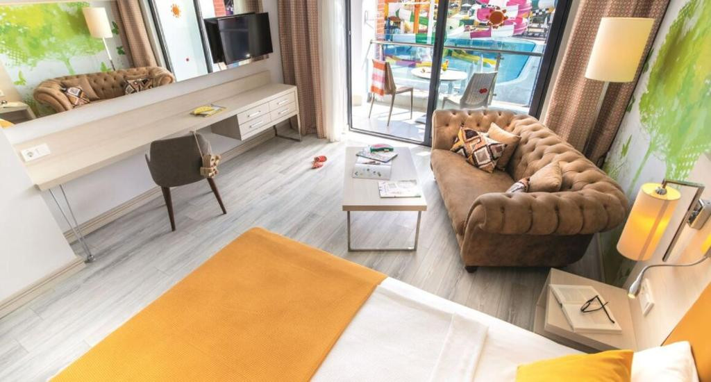 Отдыхали 7 ночей в составе 5 человек, 2 взрослых и дети 8,6,3 за 330 тысяч по горячей, на мой взгляд дороже не стоит... Сравнивать не счем, но эффекта прям всё супер не было... Дети довольны горки басики зашли... Бассейн на пляже, ресторан на пляже отличный (готовят несколько вид пасты и закуски) обедали там. Не всё фото соответвуют действительности, особенно с пляжем, он чистая галька, заход в море сложный, а шезлонги с зонтиками стоят в стороне. Территория разделена на шумную зону с аквапарками, бассейнами и т.д. и тихую зону с ещё одним бассейном и легушатничком рядом, есть сад с диванчиками, качельками и т.д. места всегда везде были, ну только у бассейна на пляже может не большая напряженка, в целом свободно... Ремонт в номере стильнинький, но старенький (двухкомнотный, 5 этаж). Были замечены ремонтные работы, Где-то прям что-то очень новое, Что-то уже требует ремонта и замены. Еда по мне не плохая, но простая без изысков, морепродуктов не было... Алкоголь средний, голова не болела, но и удовольствия не чувствовалась... Мороженое было всегда без проблем вкусное. В нашем случае цена качество соответствует