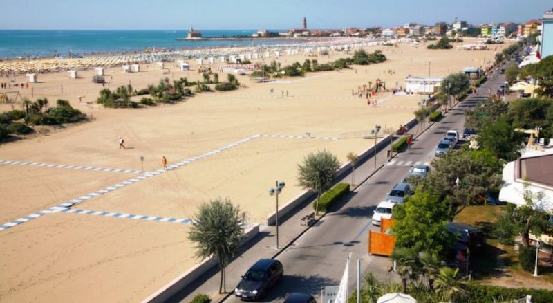 собственный песчаный пляж с зонтами и шезлонгами перед отелем (через дорогу).