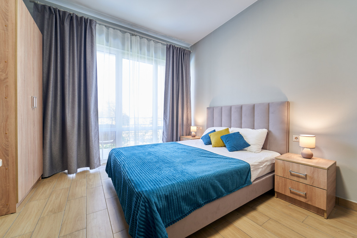 Семейный 2-комнатный — 45 кв. м. Кровати: 1 двуспальная. Кухня-гостиная и спальня. Дополнительное спальное место: диван раскладной + можно поставить раскладушку.