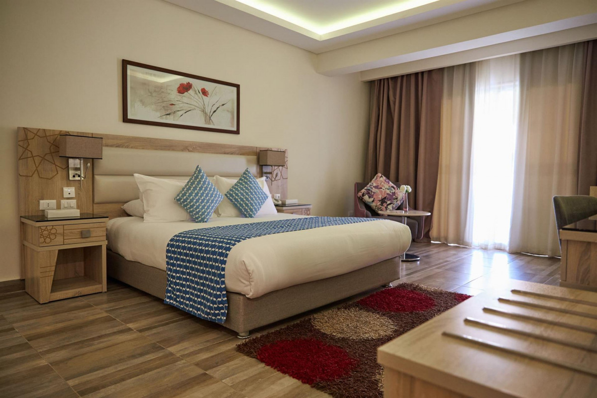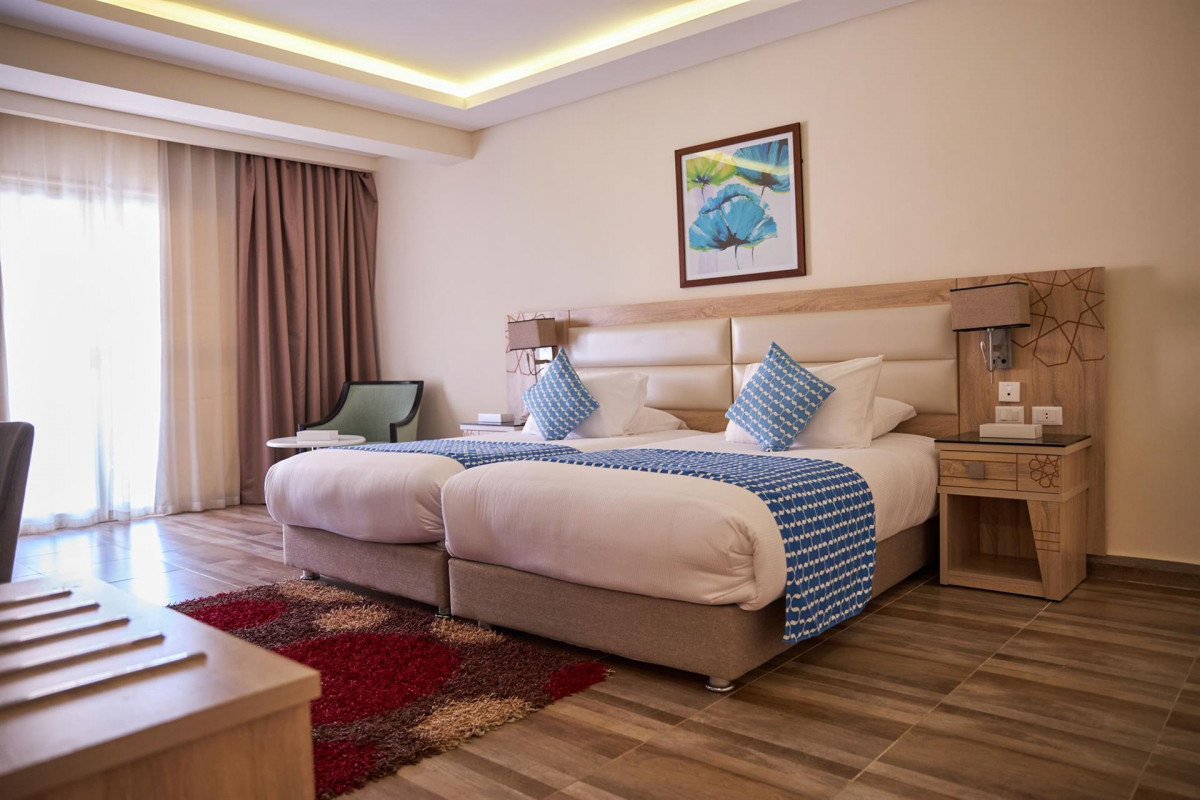 Отдыхали в этом отеле в феврале. Отель с огромной территорией, так как объединены вместе три отеля, можно пользоваться инфраструктурой всех отелей. Множество бассейнов, в том числе с подогревом, баров, снэк баров. Номер достался просторный, с удобными кроватями. Уборка в номерах ежедневная, постельное и полотенца меняют каждый день, нам и не надо было, так как прилетели на 6 ночей, персонал старается, даже решили их отблагодарить. По питанию изысков нет, но все очень вкусное, десерты, пицца просто бомба. Из фруктов выбор был не большой, но нам хватило. Посетили А,ля карт, брали рыбное меню, просто восторг. Меня там поздравили с ДР, вынесли торт, спели песню, для меня это был приятный сюрприз. По алкоголю пиво, вино вкусное, крепкие напитки, мороженное не пробовали. На завтраках бармен делает отличный кофе. До пляжа ходили всегда пешком, минут 15, лежаков всегда хватало. На пляже есть бар с напитками, официант даже разносит. В 50 метрах от пляжа есть снэк бар, где можно перекусить; пицца, фри, фрукты, овощи, чай. За территорий отеля не чего нет, погулять негде. Можно на такси доехать до магазинов. Брали экскурсию у гида в Луксор, понравилось. В целом отдыхом в данном отеле довольны, однозначно рекомендую.