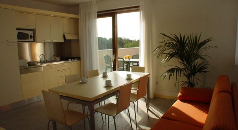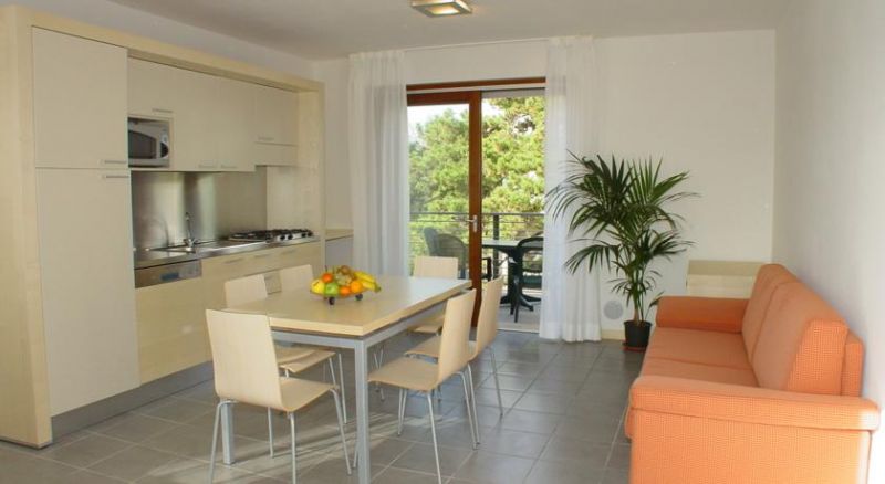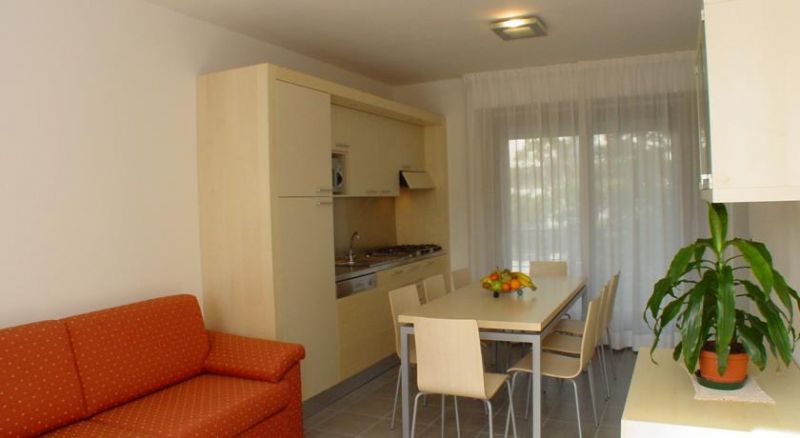 Апартаменты Trilocale - просторные апартаменты, расположенные на первом, втором и третьем этажах резиденции: 2 спальни в совокупности с 5-ю кроватями, зона гостиной, кухонный уголок, ванная комната (душ), терраса с видом на сад. Максимальное размещение 5 человек.