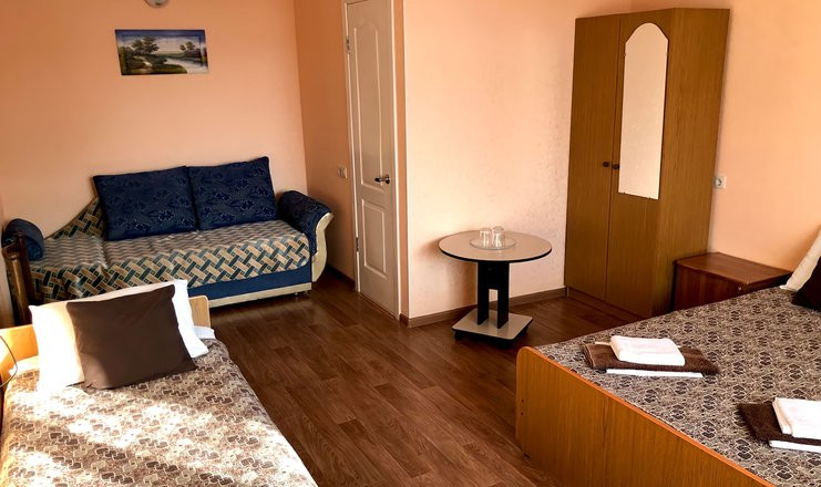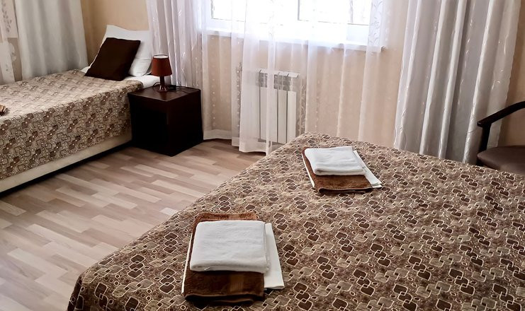 Люкс 3-местный 1-комнатный: 12-15 кв. м. Кровати односпальные: или одна двуспальная и одна односпальная кровати
