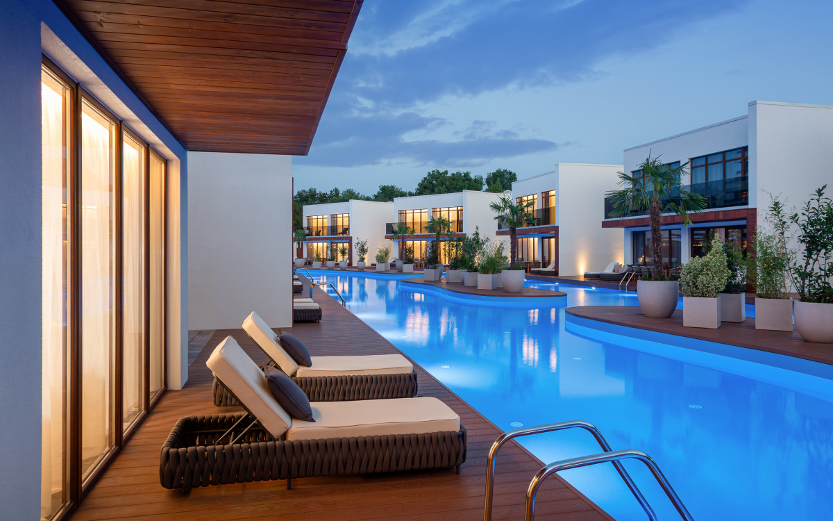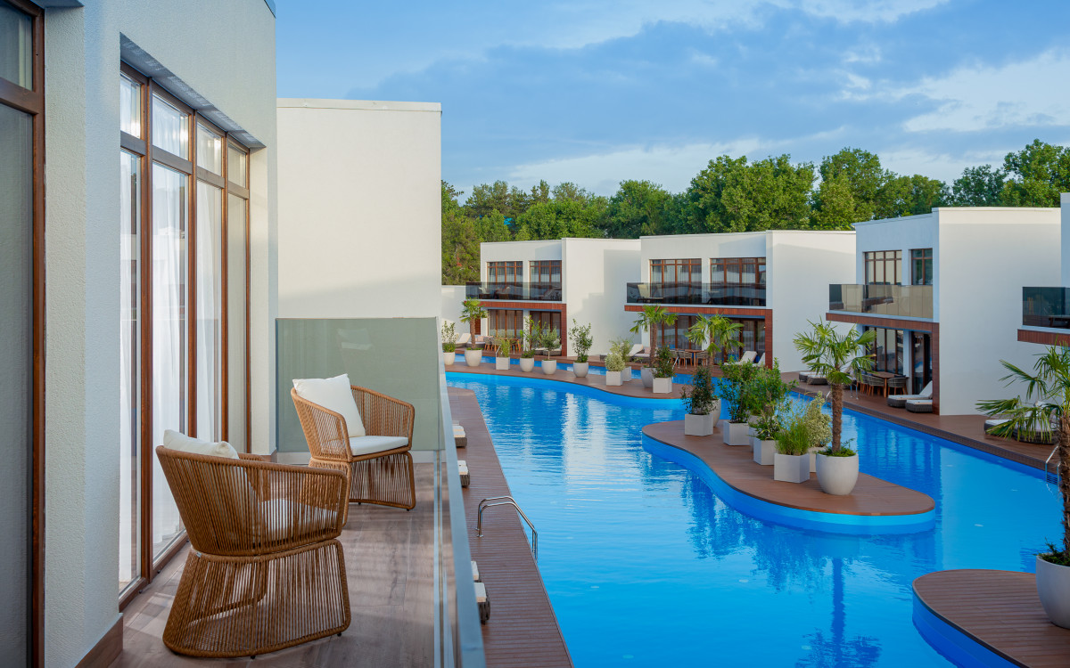 Главный корпус отеля выполнен в форме подковы, внутри которой находится закрытая и уютная территория отдыха с бассейном. В главном корпусе более 240 номеров. В номерах есть все необходимое для комфортного отдыха.