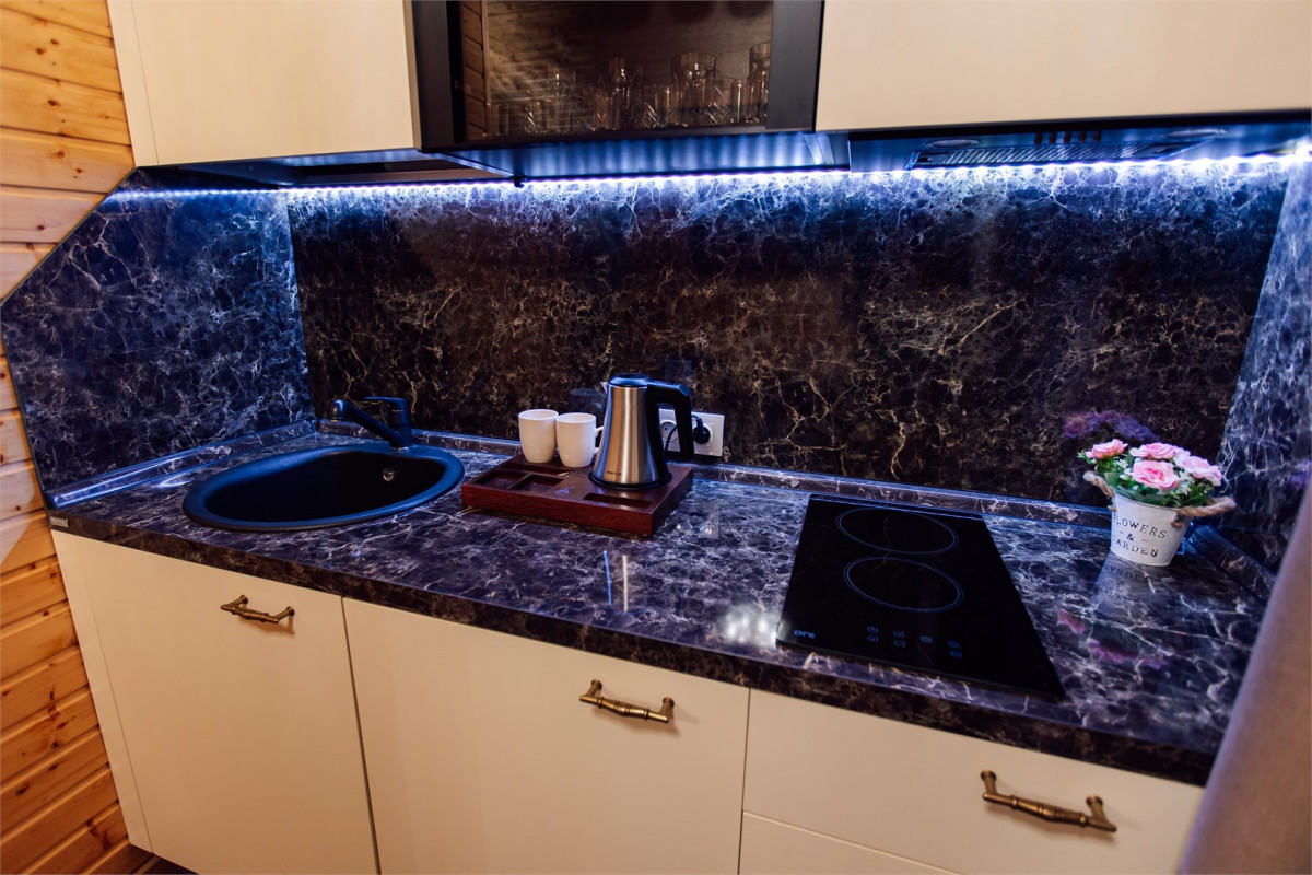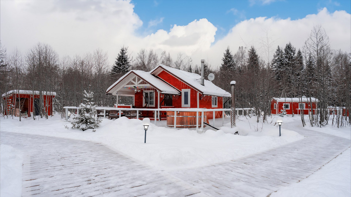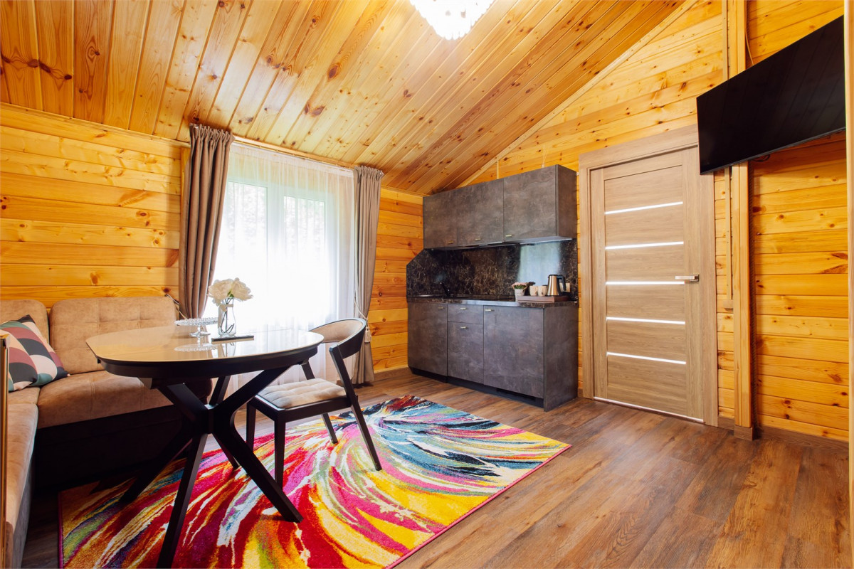 Дом Романтика с купелью на дровах (HOUSE OF ROMANCE with a wood-burning font): 50 кв. м. Комнаты в номере: Спальня и гостиная, Столовая. Кровати: 2 двуспальные