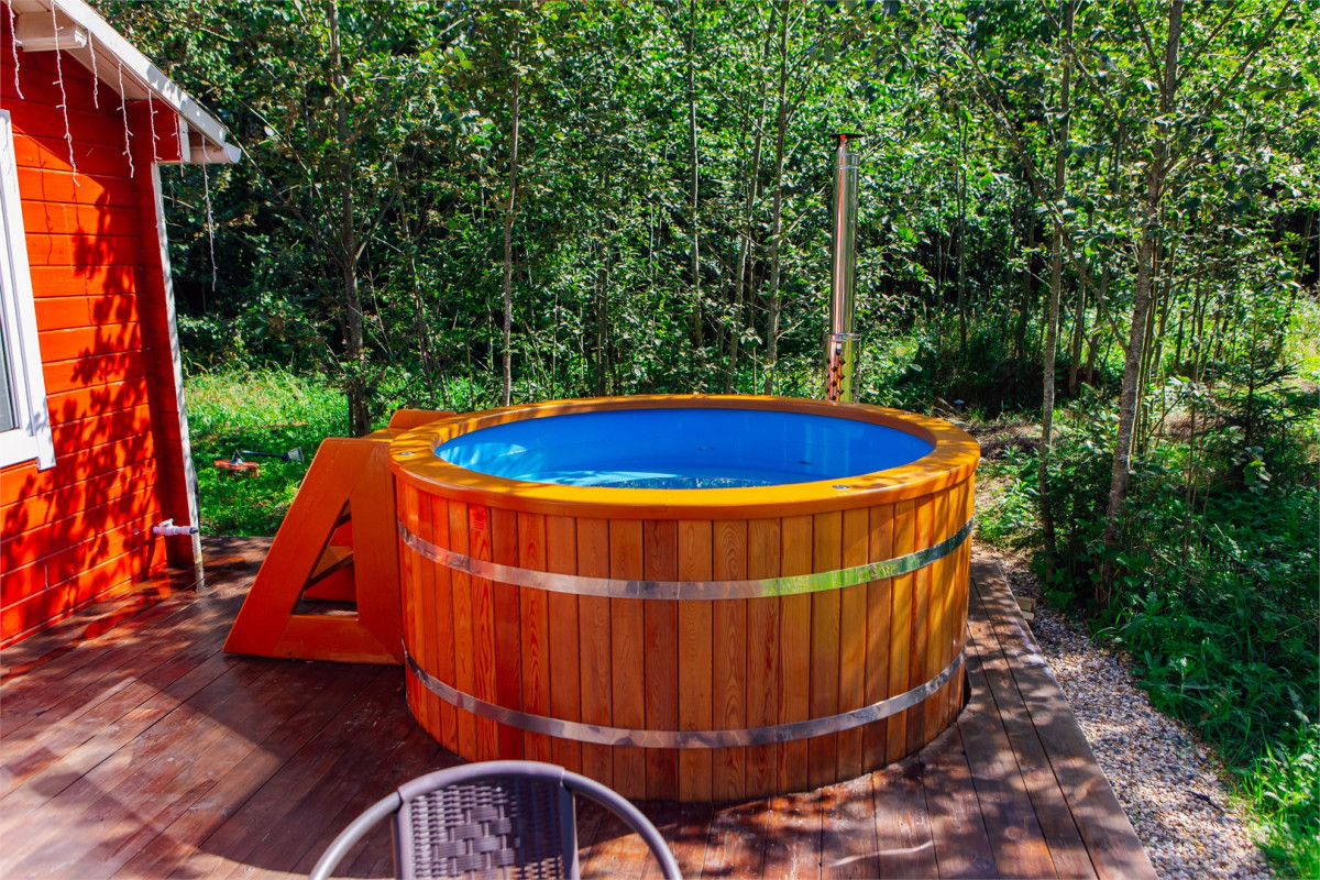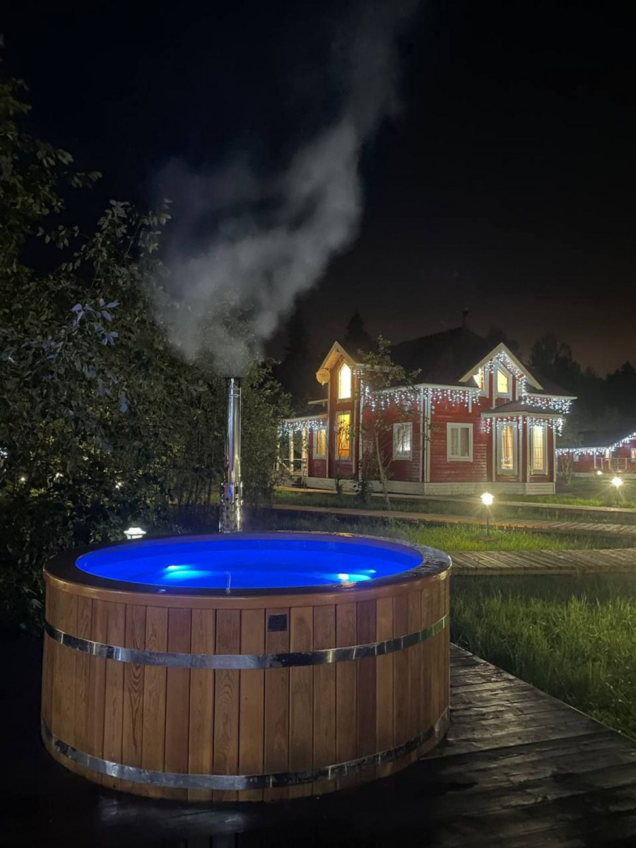 Дом Вдохновение с купелью на дровах (HOUSE INSPIRATION with a wood-burning font): 50 кв. м. Комнаты в номере: Спальня и гостиная, Столовая. Кровати: 2 двуспальные