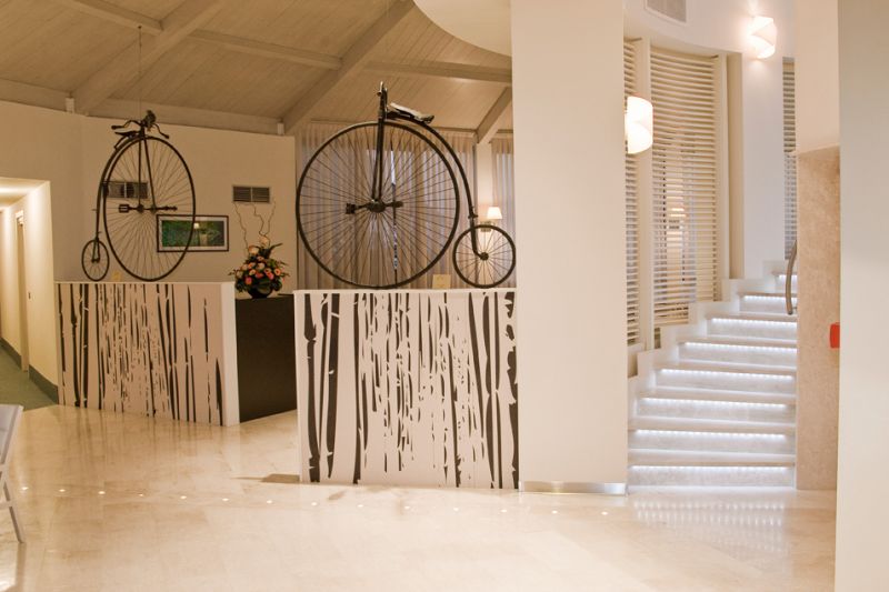 Отель Riviera dei Fiori – это новая отличная гостиничная структура на Лигурийской Ривьере, открытие которой состоялось в апреле 2010 года. Отель находится в нескольких шагах от центра небольшого приятного курорта Сан-Лоренцо-аль-Маре, что в 10 мин на такси от веселого и шумного Сан-Ремо и в 5 мин на такси от курорта Империя. Гостеприимные и стильные интерьеры отеля выполнены в современном стиле модерн. Владелец отеля является коллекционером старинных 2-х колёсных велосипедов, некоторые из которых использованы для декора отеля. Все номера просторные и светлые.