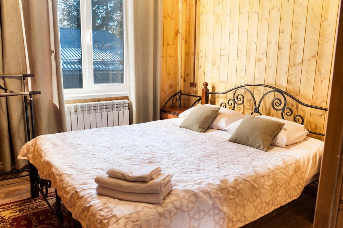 4-комнатный коттедж улучшенный. Коттедж имеет две спальни, два санузла, кухню-зал, гостиную, гардероб и прихожую. Он рассчитан на проживание до 10 гостей.