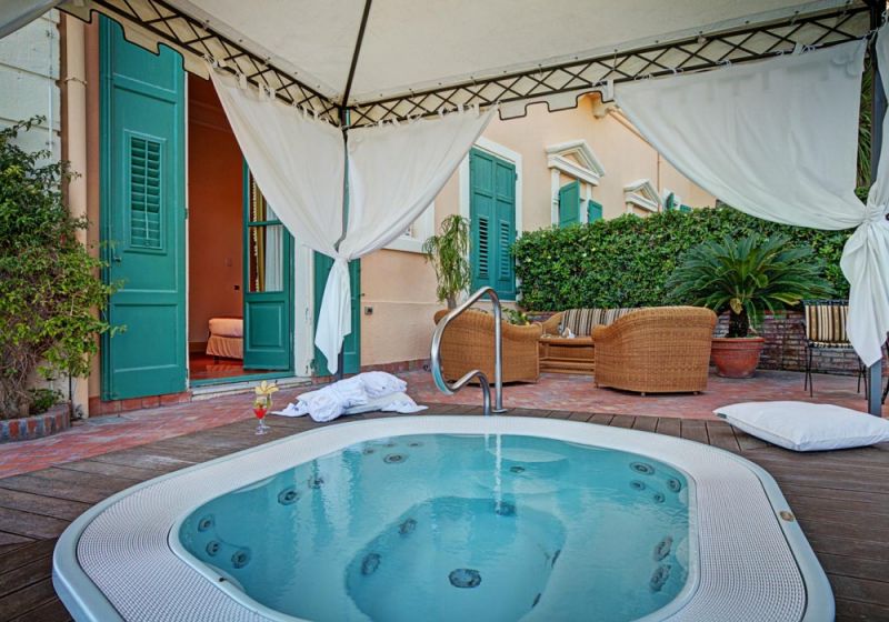 Garden Suite (58 кв. м, терраса с открытым джакузи, спальня, гостиная, возможна дополнительная кровать (по запросу), бесплатный Wi-Fi, оборудование Hi-fi, кофеварка Espresso, может быть совмещен с номером Deluxe Room, макс. 3 чел.)