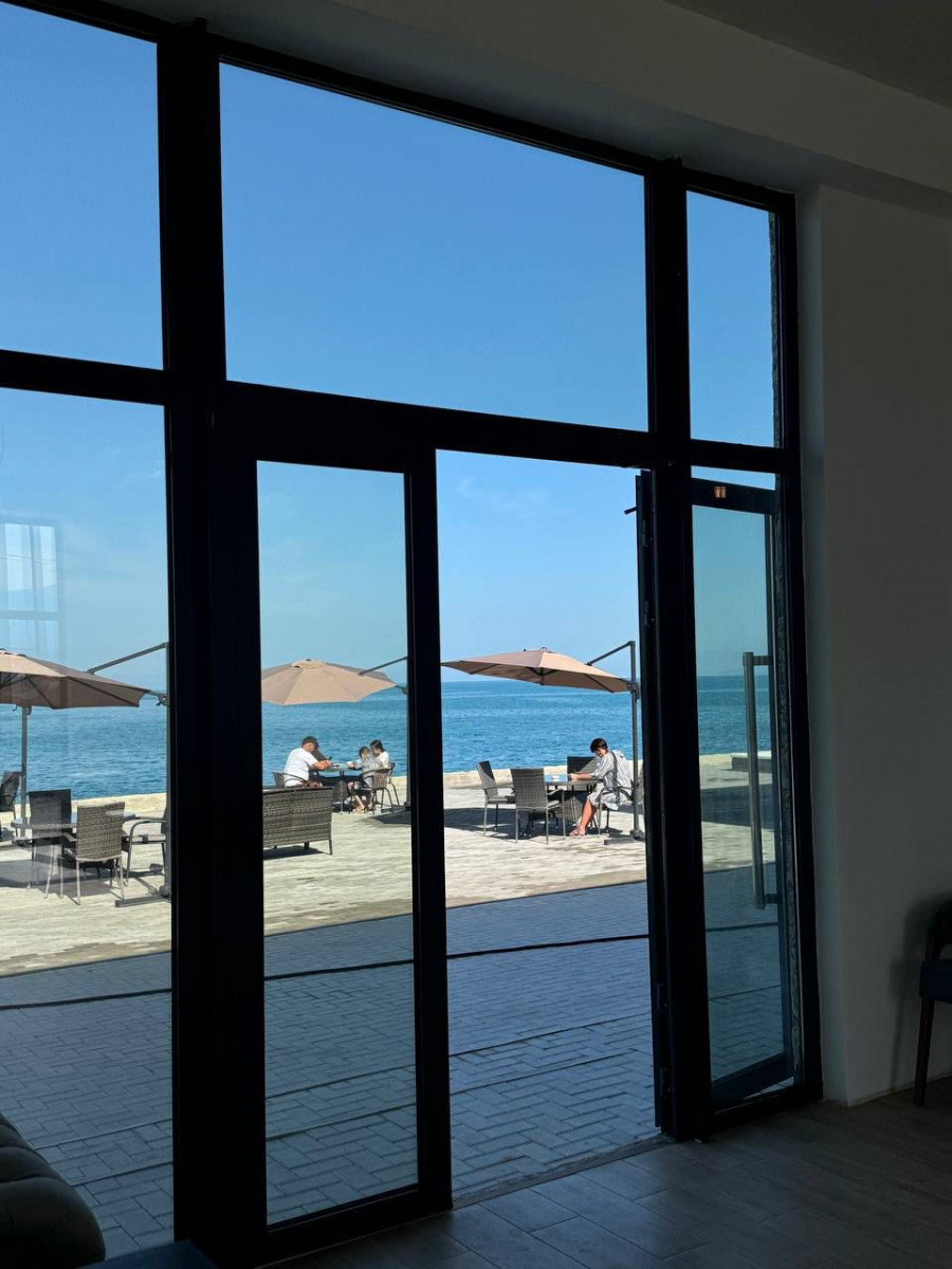 На первой береговой линии в курортном поселке Алахадзы, расположенном в 10 км до центра Пицунды. Рядом есть несколько кафе и продуктовых магазинов, до главных достопримечательностей Гагры или Пицундской рощи можно доехать за 15 минут. Аэропорт и железнодорожный вокзал Адлера разместились почти в 60 км от отеля.