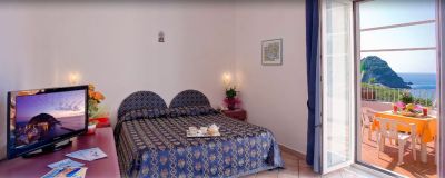 Отель имеет прямой спуск к пляжу Кава Градо, из его окон открывается живописный вид на порт Сант Анджело. В отеле 22 номера