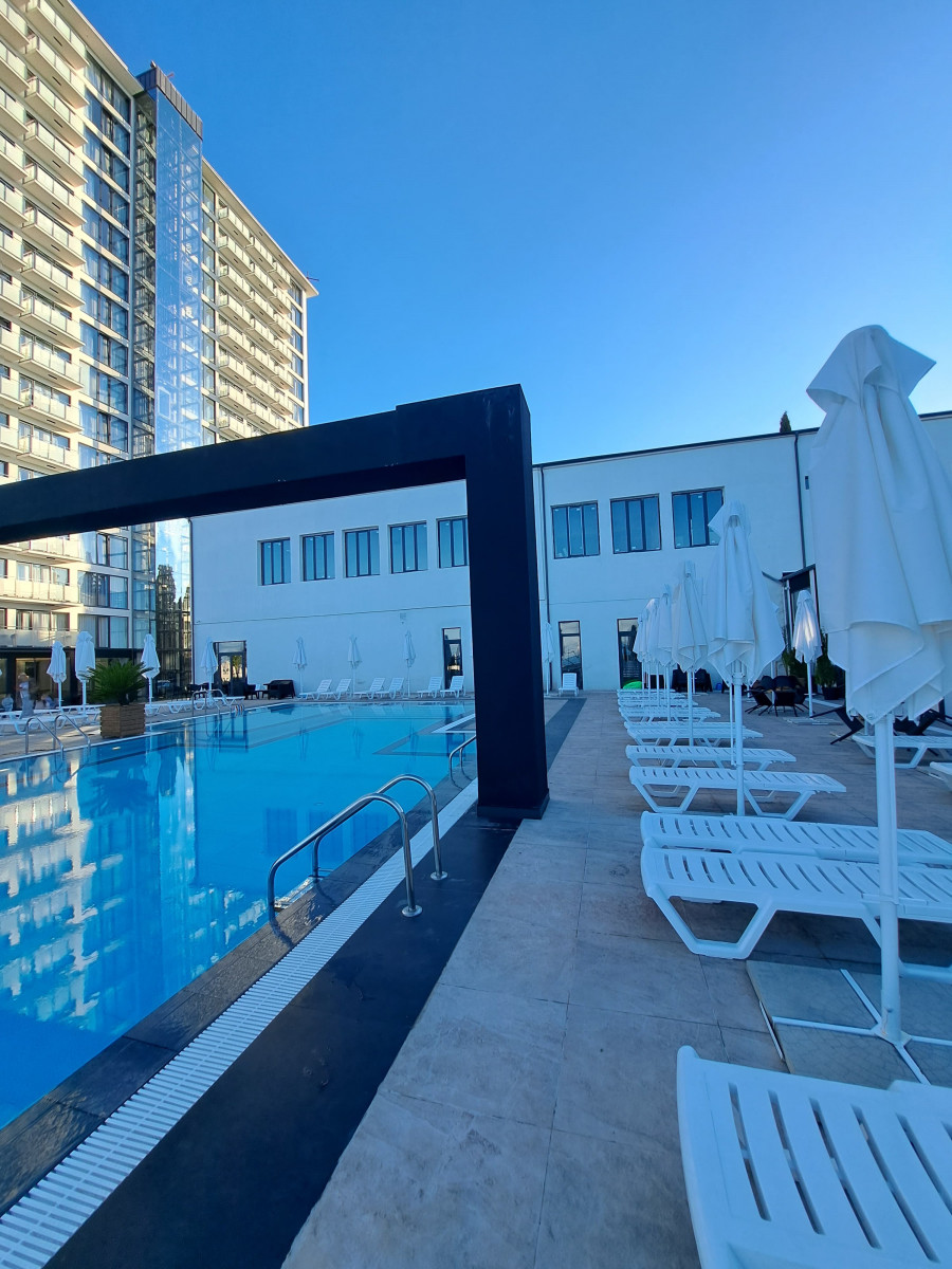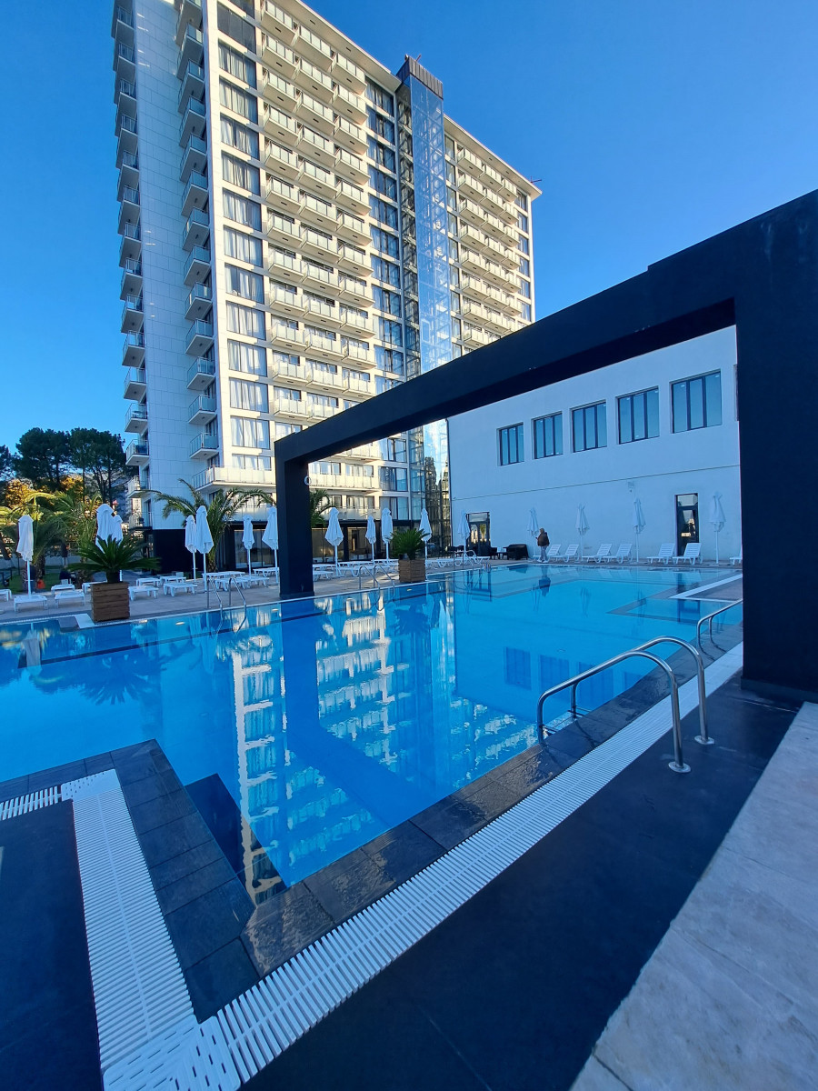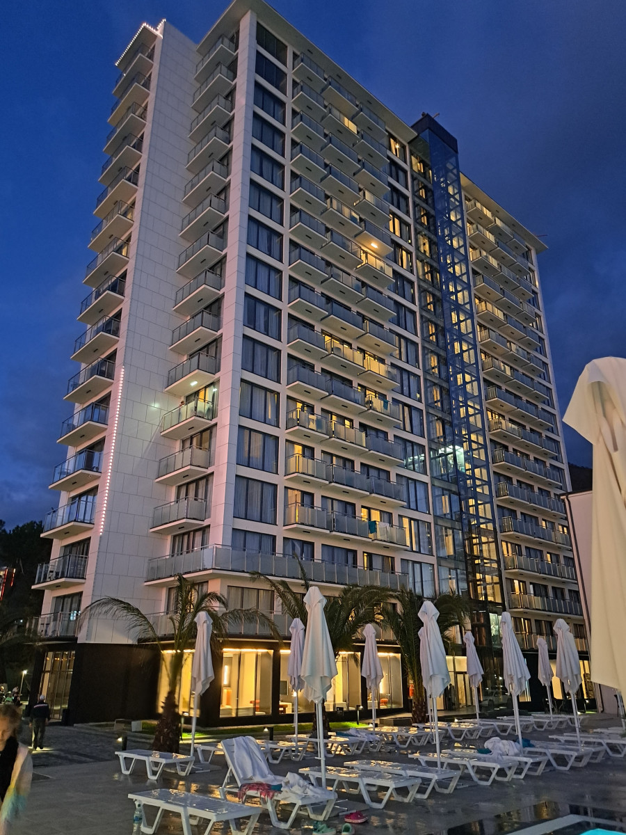 Самое ужасное место !!!! Если хотите хорошо отдохнуть - вам точно не сюда!!!! Из самого хорошего что здесь есть - это номера и то, у нас внизу вид еще тот и бесконечный звук дрели... Про "все включено" вообще отдельная история, люди даже понятия не имеют как это должно быть! В так называемом "ресторане " персонал грубый, ужасный отвратительное отношение к гостям , еда просто ужас из самых дешёвых продуктов честно говоря такого не увидишь даже в самой дешёвой столовке! Антисанитария, столы убираю еле еле, посуды не хватает ....про напитки даже стыдно писать , "вино" просто какая-то брашка или что-то между мутным пропавшим квасом и просто помиями. А чтобы за обедом или ужином выпить бокал пива или ужасного самогона( они это чачей называют) , нужно унизительно пройти через всех отдыхающих возле бассейна и попросить в ужасном "лобе баре" маленький одноразовый дешёвый стаканчик с этим ужасным пойлом , затем проследовать к своему столу, а если хочешь добавки иди назад.. .. к стати кроме этих напитков больше нет никаких !просто ужас , все сделано для того, чтоб человек не пил и не ел!!! Маленькая девочка взяла три персика, причем ужасных персика маленьких и не зрелых, так ей сказали можно только один, ато другим не достанется как можно было построить такой маленький бассейн на 16 этажей ? Это же просто издевательство! Выше уже написали, что просто кошмар, а не бассейн! Вся территория мизерная , детская площадка отвратительная (в любом дворе многоэтажки значительно лучше )! О сауне и тренажёрном зале вообще ничего не слышно, наверное здесь этого и нет, а если есть боюсь туда даже заглянуть.... В общем писать и писать только негатив! Уехать хотели в первый же день, но турфирма сказала, что денег нам не вернуть! Живем и мучаемся, считаем дни до отъезда! Спасаемся экскурсиями и рестораном турецкой кухни, который находится около рынка( прям на против), там действительно вкусно и очень приятно! А за что мы здесь заплатили не понятно- наверное в пакет "все включено" включено только хамство, грязь, ужасный алкоголь и еда , самый низкий уровень сервиса и испорченное мнение не только об этом отеле, но и о стране полностью !!!! Хотя без сомнений здесь есть очень красивые места и экскурсии просто прекрасные !!!!