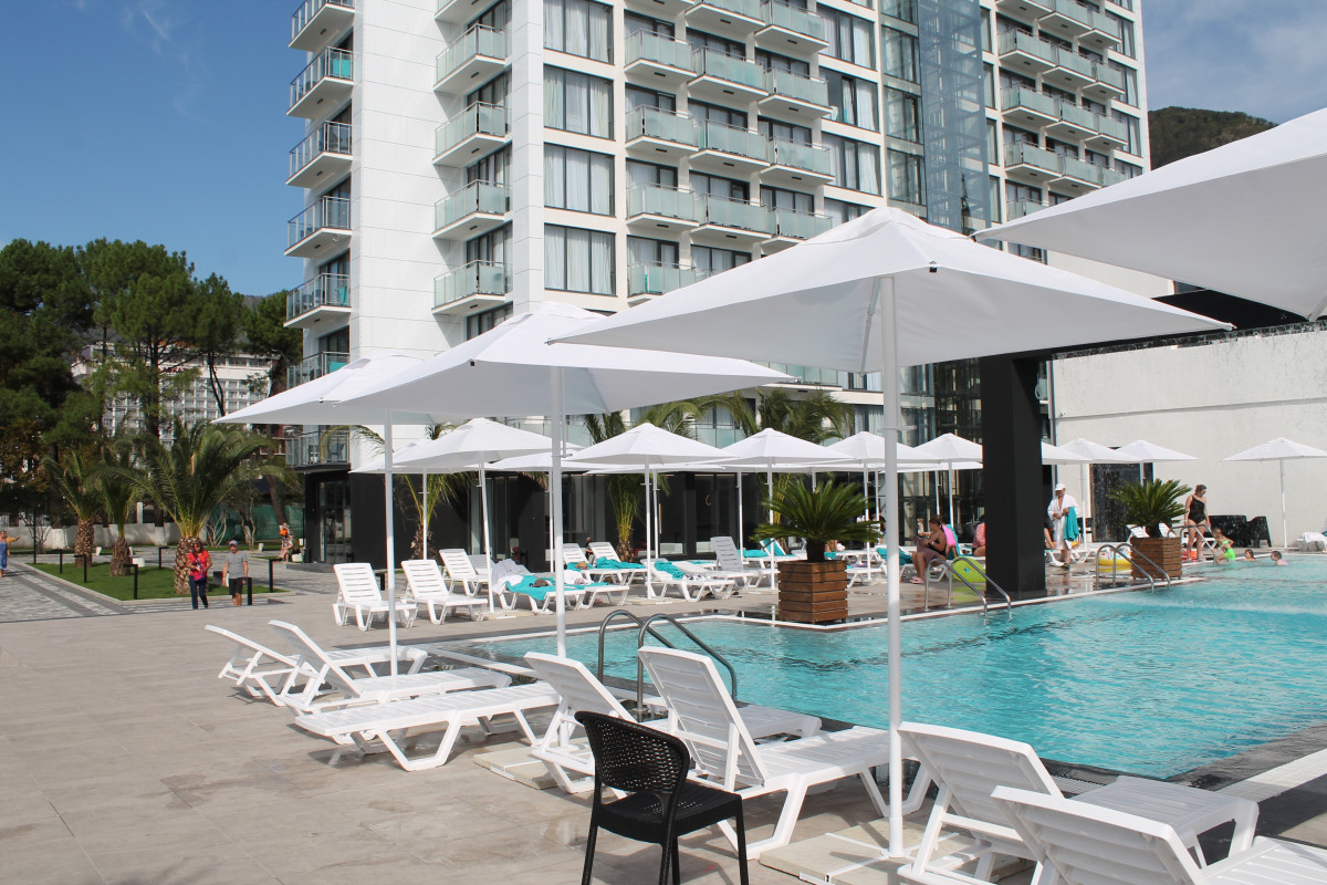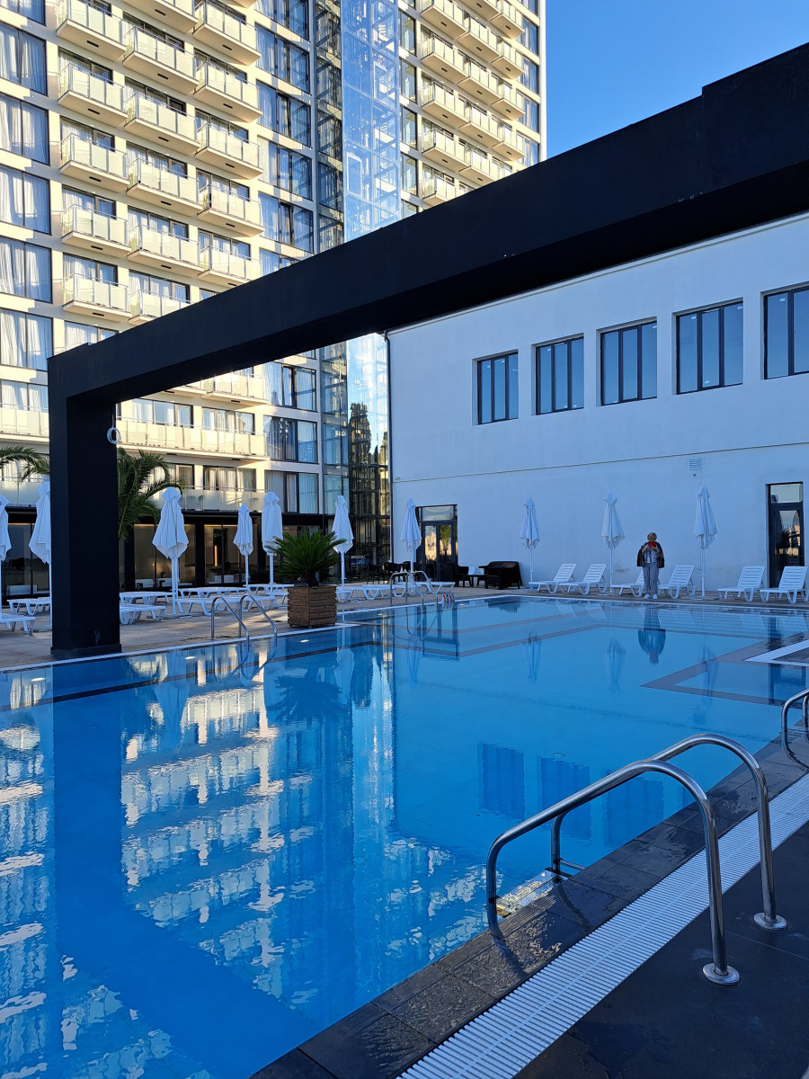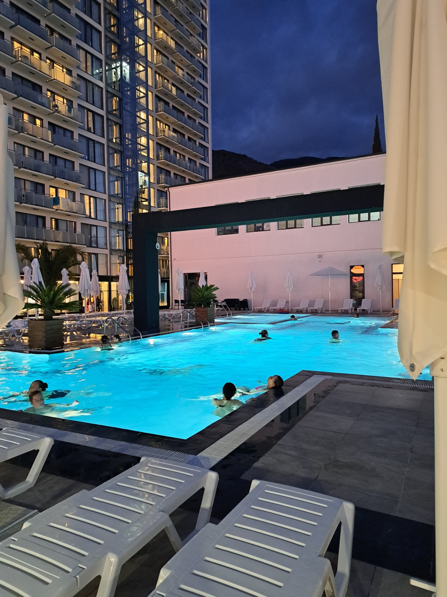 Самое ужасное место !!!! Если хотите хорошо отдохнуть - вам точно не сюда!!!! Из самого хорошего что здесь есть - это номера и то, у нас внизу вид еще тот и бесконечный звук дрели... Про "все включено" вообще отдельная история, люди даже понятия не имеют как это должно быть! В так называемом "ресторане " персонал грубый, ужасный отвратительное отношение к гостям , еда просто ужас из самых дешёвых продуктов честно говоря такого не увидишь даже в самой дешёвой столовке! Антисанитария, столы убираю еле еле, посуды не хватает ....про напитки даже стыдно писать , "вино" просто какая-то брашка или что-то между мутным пропавшим квасом и просто помиями. А чтобы за обедом или ужином выпить бокал пива или ужасного самогона( они это чачей называют) , нужно унизительно пройти через всех отдыхающих возле бассейна и попросить в ужасном "лобе баре" маленький одноразовый дешёвый стаканчик с этим ужасным пойлом , затем проследовать к своему столу, а если хочешь добавки иди назад.. .. к стати кроме этих напитков больше нет никаких !просто ужас , все сделано для того, чтоб человек не пил и не ел!!! Маленькая девочка взяла три персика, причем ужасных персика маленьких и не зрелых, так ей сказали можно только один, ато другим не достанется как можно было построить такой маленький бассейн на 16 этажей ? Это же просто издевательство! Выше уже написали, что просто кошмар, а не бассейн! Вся территория мизерная , детская площадка отвратительная (в любом дворе многоэтажки значительно лучше )! О сауне и тренажёрном зале вообще ничего не слышно, наверное здесь этого и нет, а если есть боюсь туда даже заглянуть.... В общем писать и писать только негатив! Уехать хотели в первый же день, но турфирма сказала, что денег нам не вернуть! Живем и мучаемся, считаем дни до отъезда! Спасаемся экскурсиями и рестораном турецкой кухни, который находится около рынка( прям на против), там действительно вкусно и очень приятно! А за что мы здесь заплатили не понятно- наверное в пакет "все включено" включено только хамство, грязь, ужасный алкоголь и еда , самый низкий уровень сервиса и испорченное мнение не только об этом отеле, но и о стране полностью !!!! Хотя без сомнений здесь есть очень красивые места и экскурсии просто прекрасные !!!!