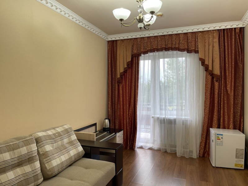 Стандарт одноместный — одноместный номер номер с балконом, односпальной кроватью, диваном, ванной комнатой с душем; макс. 1 чел.