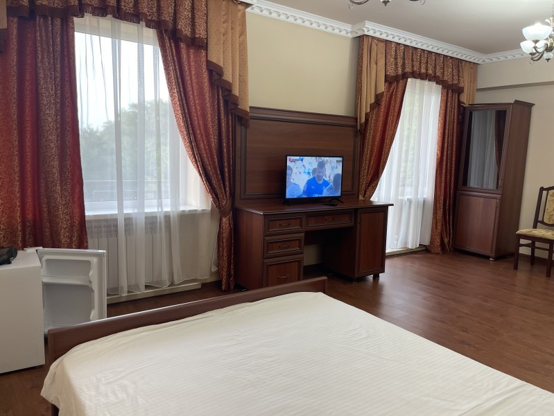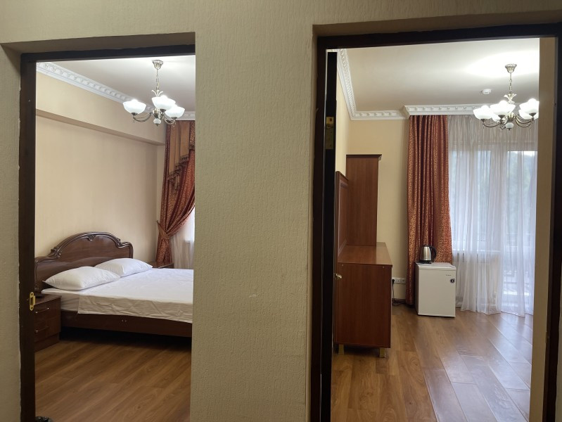 Люкс — двухкомнатный номер с балконом, спальней с двуспальной кроватью, 2 креслами, гостиной с диваном, ванной комнатой с джакузи; макс. 2 чел.