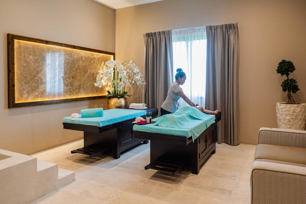 Junior Suite: 55 кв м, двуспальная ковать размера king-size, зона гостиной; ванная комната с ванной и душевой; терраса с шезлонгами