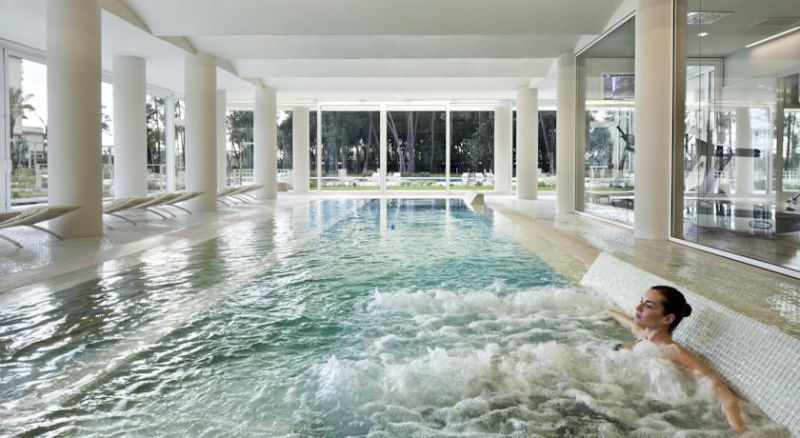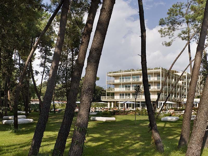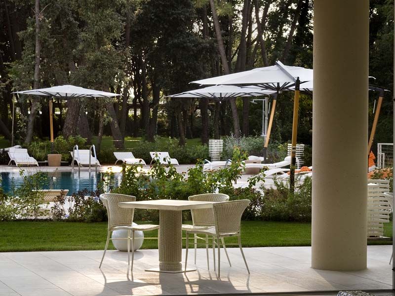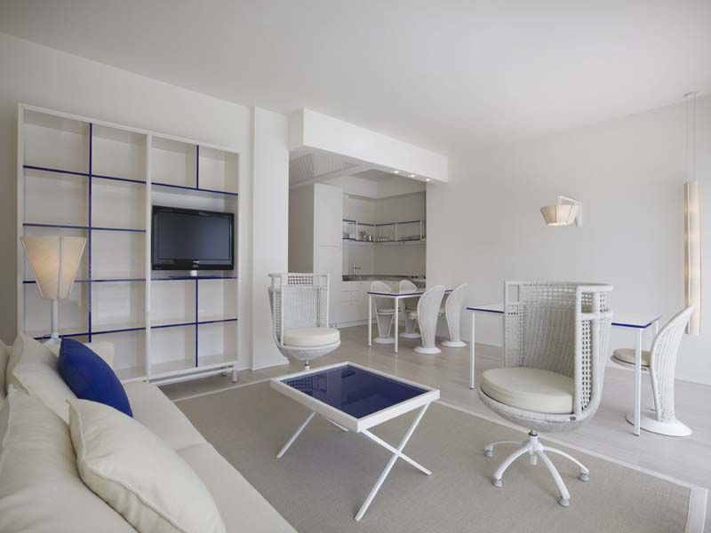 JUNIOR SUITE (двухкомнатный номер с большой гостиной, спальней с двуспальной кроватью, ванной комнатой с душем и ванной, просторной двухместной террасой со столом и стульями. Современная мебель в белых, бирюзовых, синих или рубиновых тонах. Мини-бар, сейф, кондиционер, ТВ с плоским экраном, банный халат и тапочки с логотипом UNA, принадлежности для чая и кофе, доступ в Интернет и прямая телефонная линия)