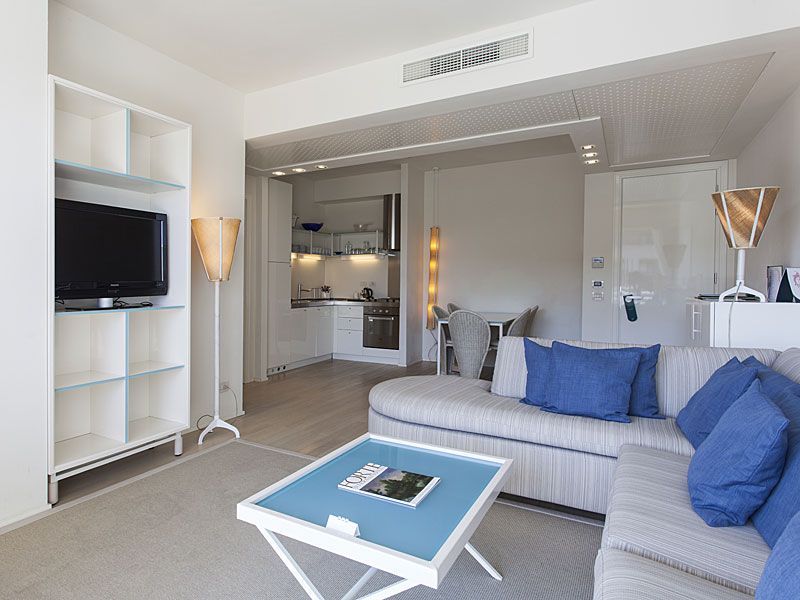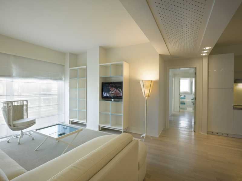 TRILOCALE (состоит из спальни и холла с двуспальным диваном, обеденным столом, кухонным уголком, посудомоечной машиной, холодильником, духовкой, стиральной машиной + ванная комната, добавлена ещё одна спальня и, в некоторых, вторая ванная комната, спутниковое ТВ, сейф, отопление/кондиционер, телефон и высокоскоростной Интернет. )