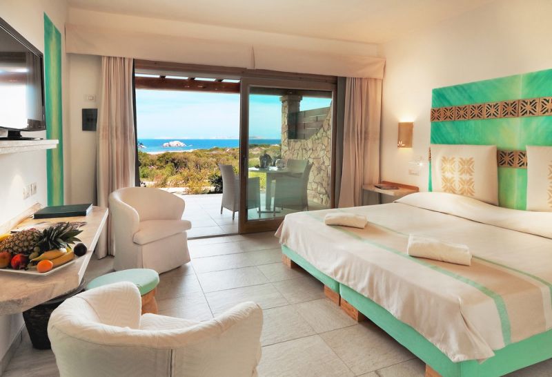 President Spargi Sea View - Erica (63 кв.м, веранда 30 кв. м с видом на архипелаг Ла Маддалена, спальная зона с двуспальной кроватью, гостиная зона со столом и 2 встроенными диванами, 2 ванные комнаты, гидромассажная ванна с видом на море, макс. 2 взр. + 2 реб. до 17 лет + младенец до 2 лет)